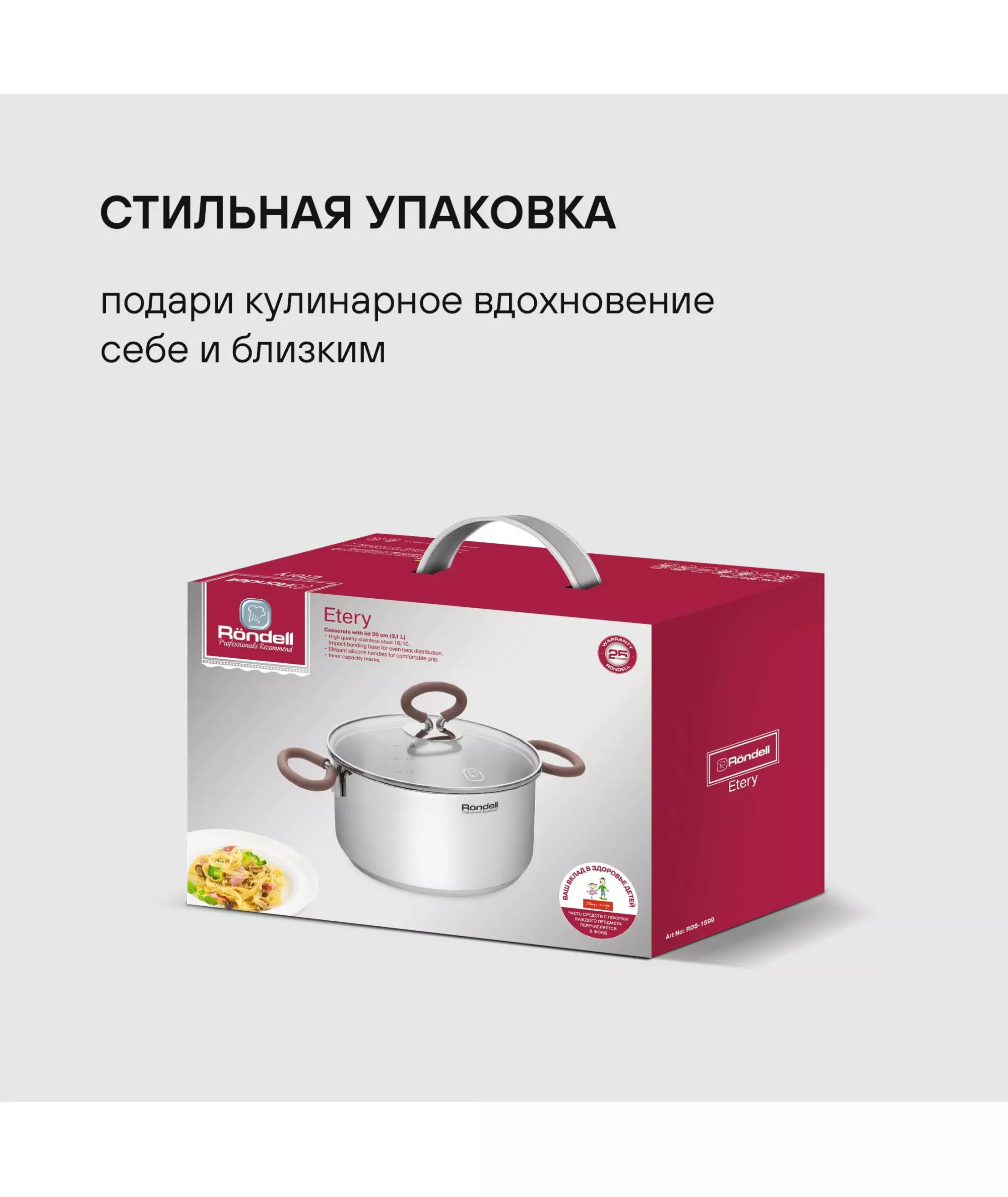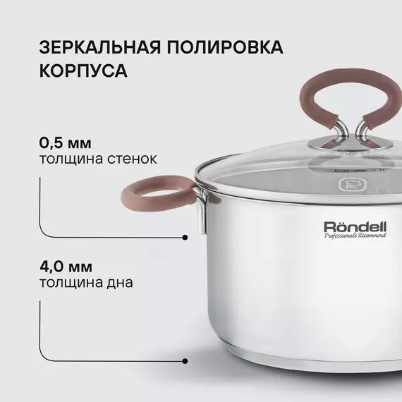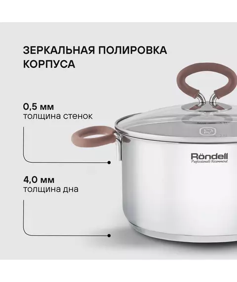 Кастрюля Rondell RDS-1599 Etery 3.1л. d=20см (с крышкой) стальной