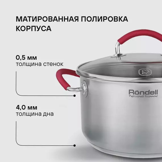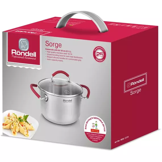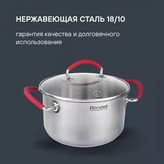 Кастрюля Rondell Sorge 2.1л. d=18см (с крышкой) стальной [RDS-1219]