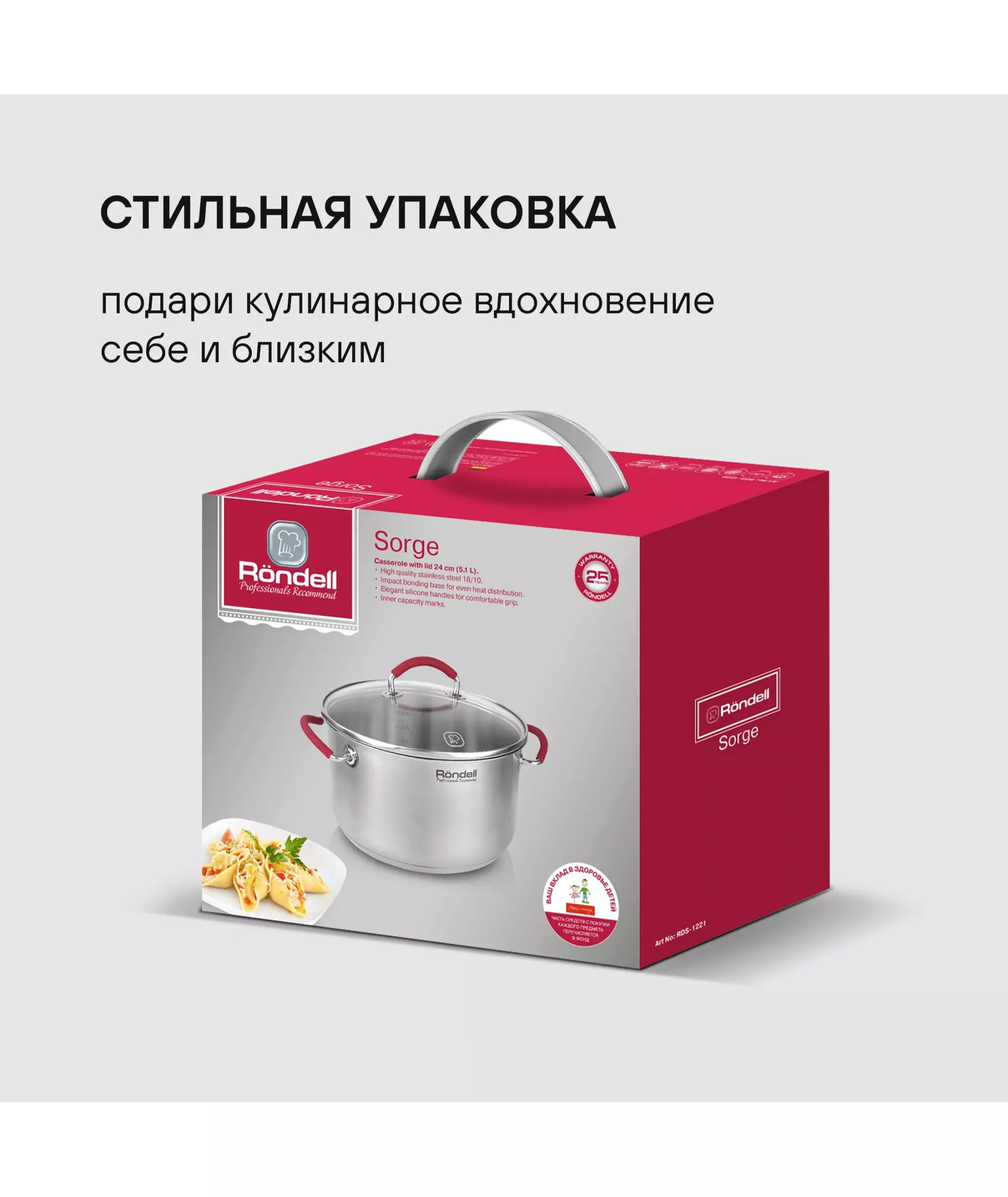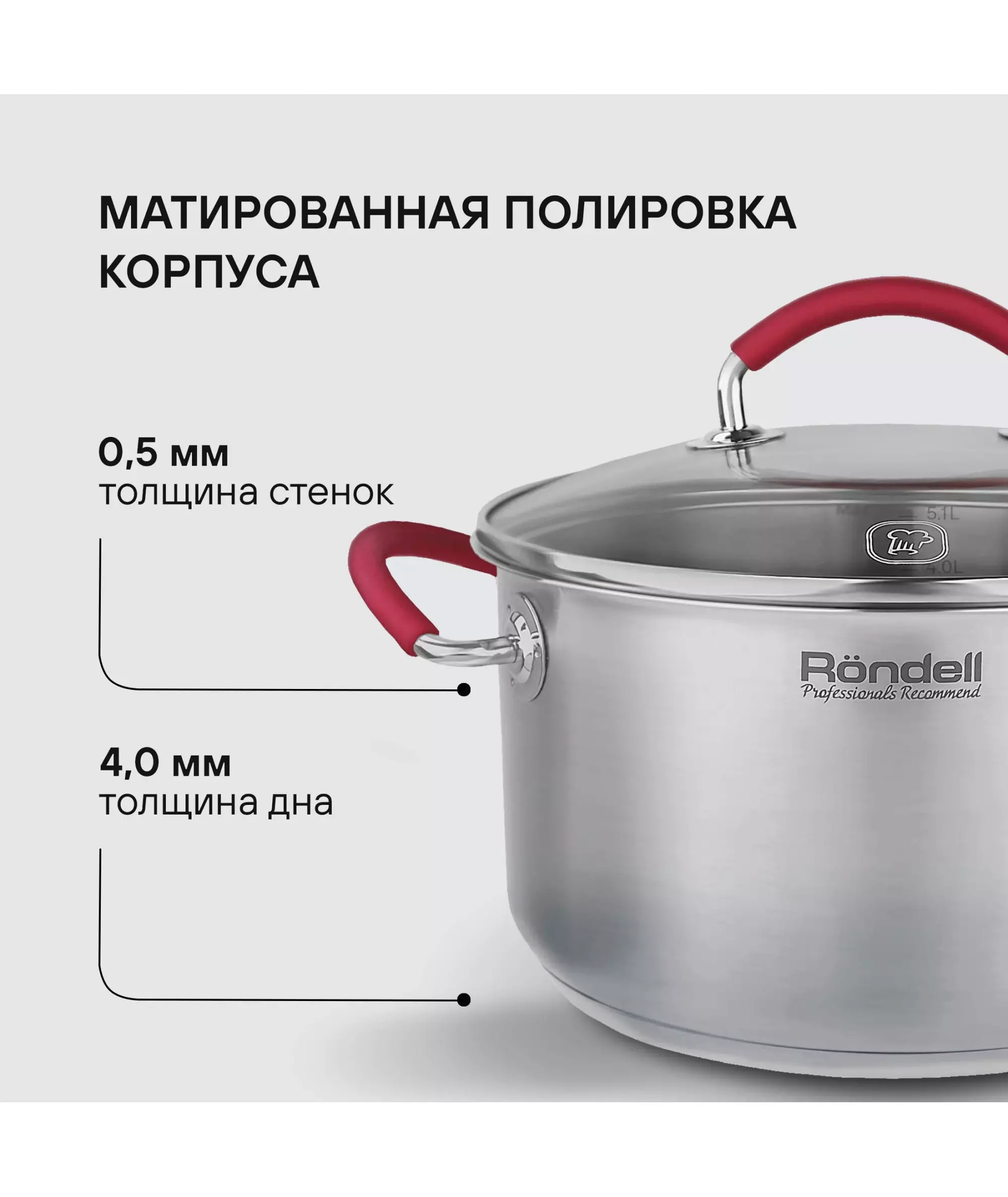Кастрюля Rondell Sorge 5.1л. d=24см (с крышкой) стальной [RDS-1221]