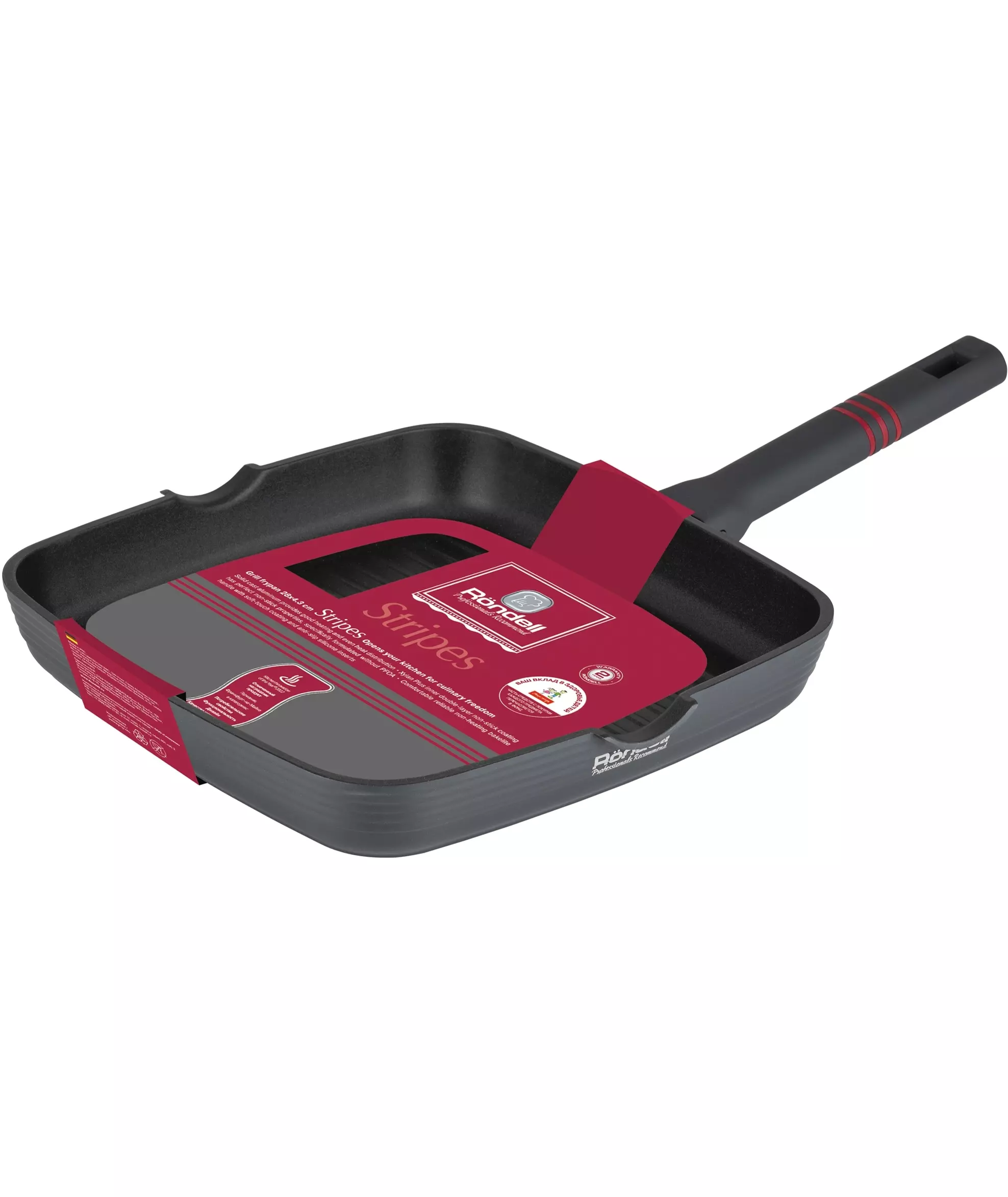 Сковорода Rondell Stripes RDA-1616 квадратная 28см покрытие: Xylan Plus ручка несъемная (без крышки) серый [RDA-1616]