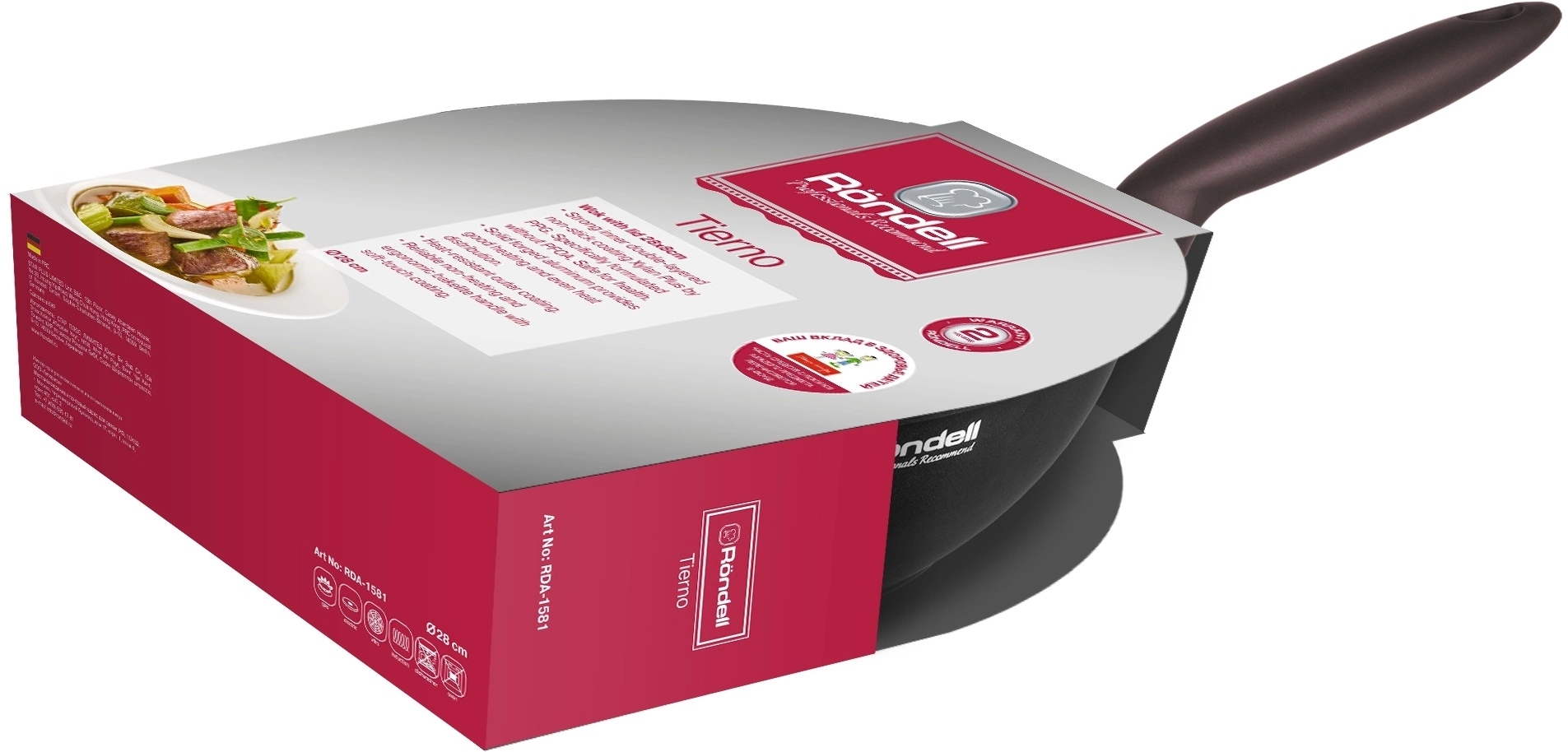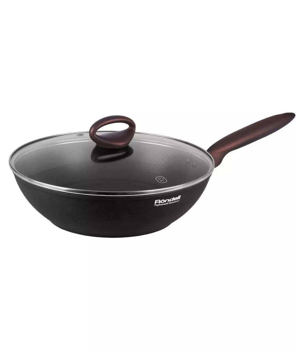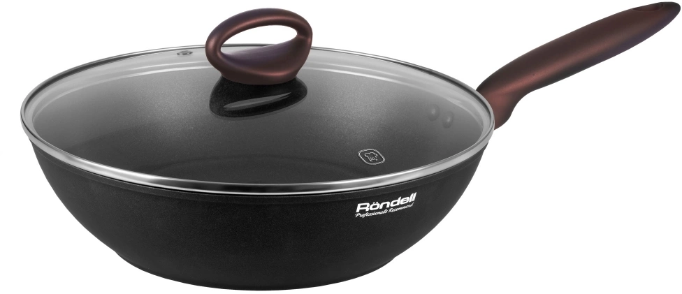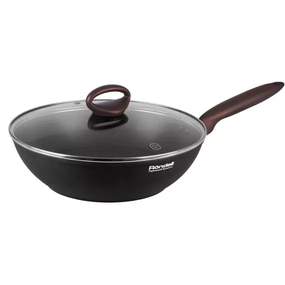 Сковорода ВОК Rondell Tierno RDA-1581 круглая 28см покрытие: Xylan Plus ручка несъемная (с крышкой) черный [RDA-1581]