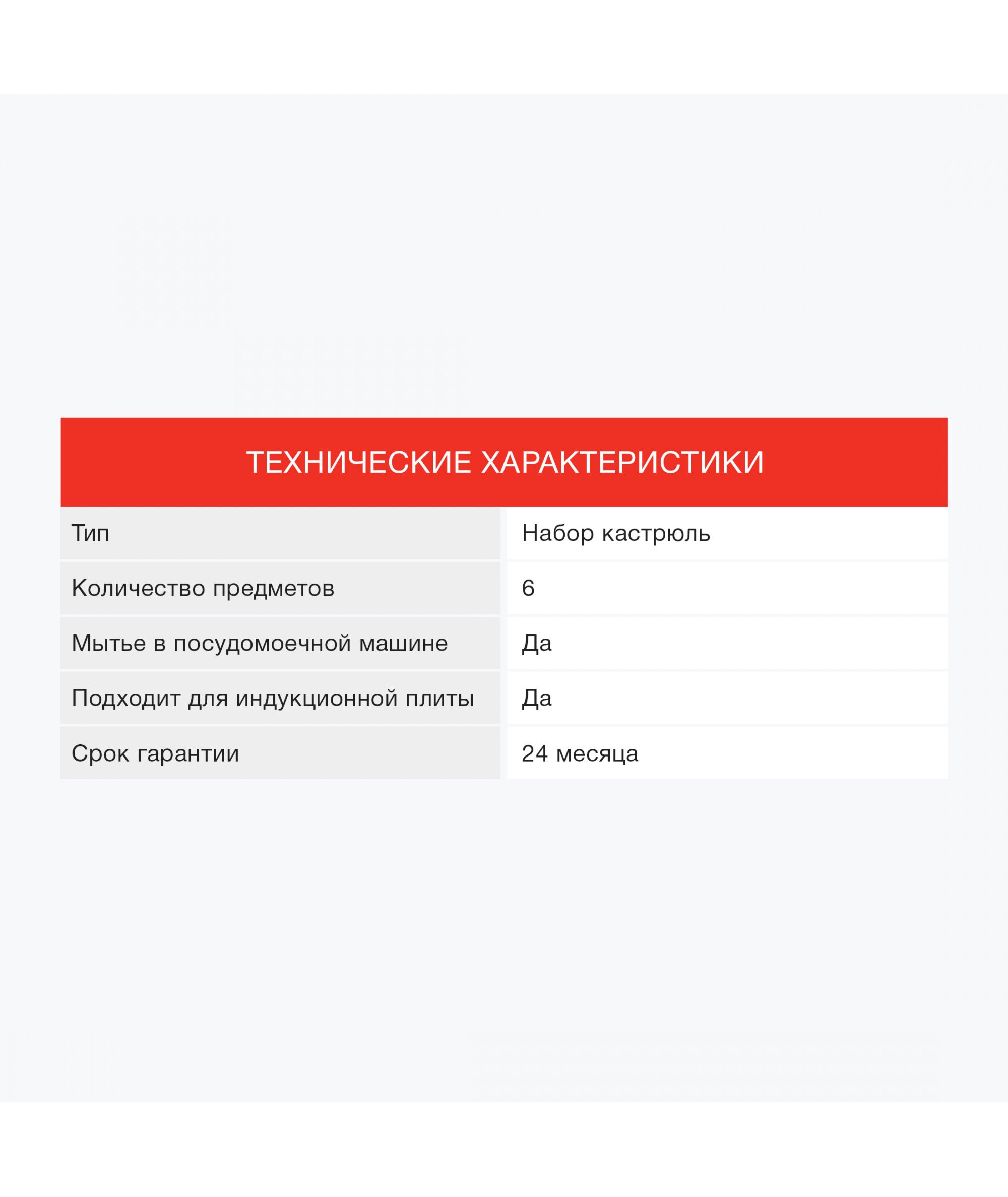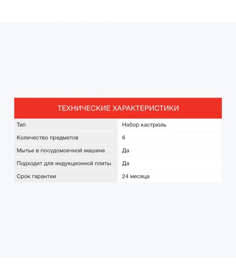 | Состав комплекта | кастрюли 6.1 л, 3.3 л, 1.5 л с крышками |