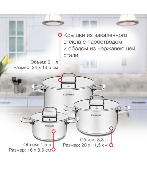 Набор кастрюль STARWIND Chef Compact 6 предметов [SW-CH3006]
