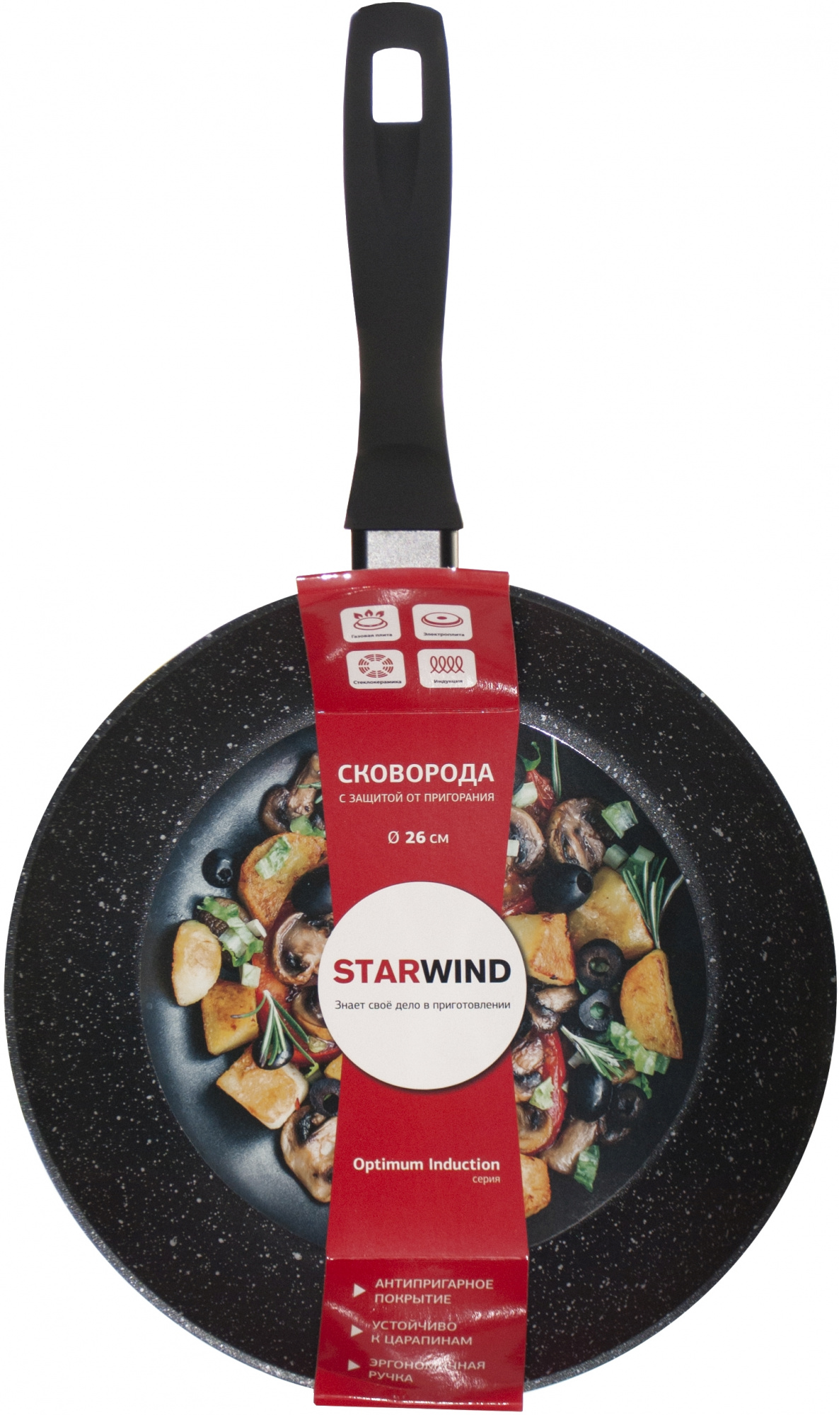 Сковорода STARWIND Optimum induction SW-OPI2026 круглая 26см покрытие: Xylan Plus ручка несъемная (без крышки) черный