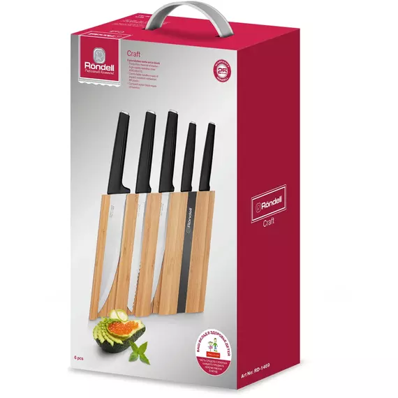 Набор ножей кухон Rondell Craft RD-1469 компл.:6предм. с подставкой черный подар.коробка [RD-1469]