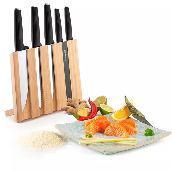 Перед вами — любимая многими классика, только в современном прочтении: глубокий черный цвет, плавные формы и изящный логотип R?ndell на теле изделий, добавляющий посуде особое благородство и монументальность. Оригинальная форма блока для ножей.