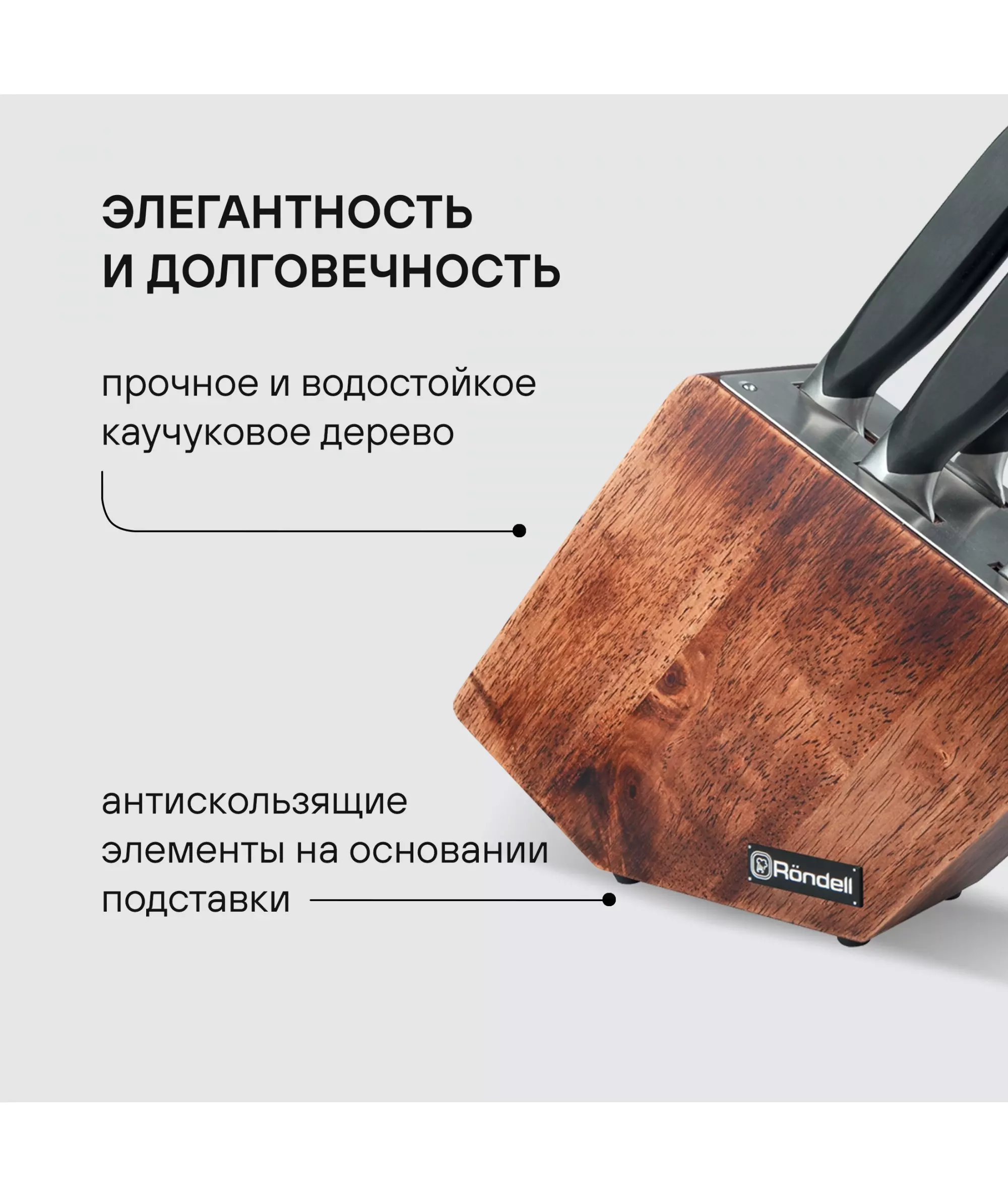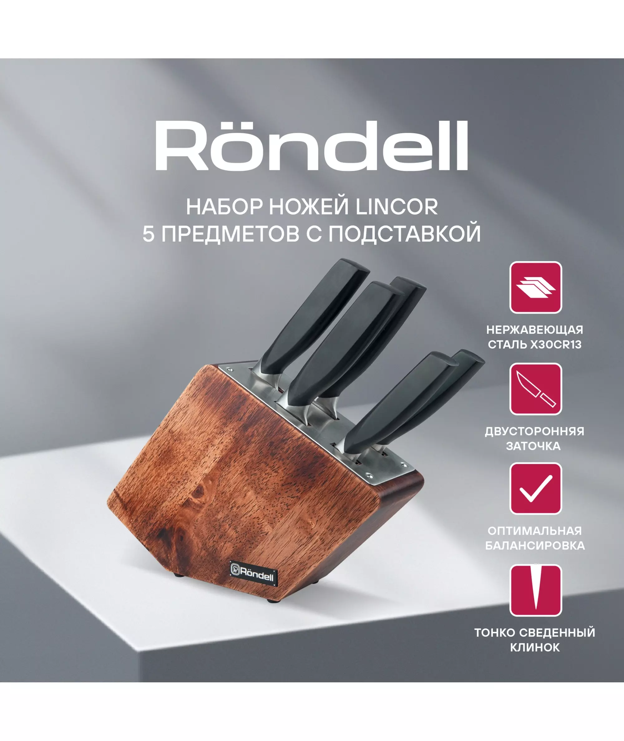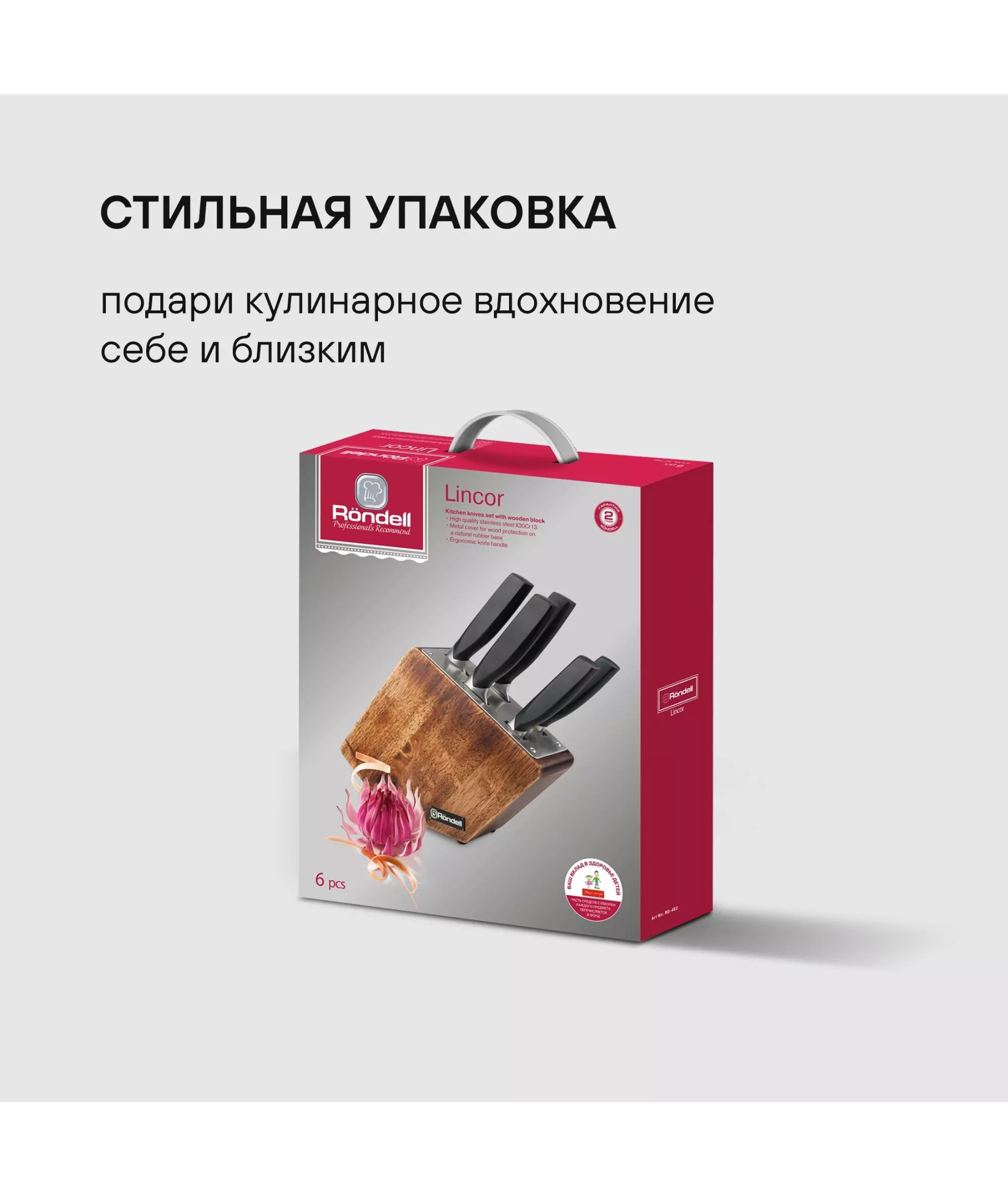 Набор ножей кухон. Rondell Lincor RD-482 компл.:6предм. с подставкой коричневый подар.коробка [RD-482]