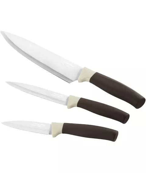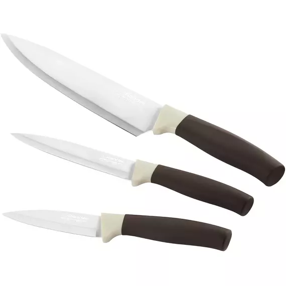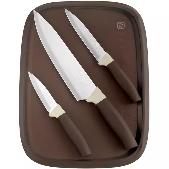 | Состав комплекта | Нож поварской 20 см, универсальный нож 12,7 см и нож для чистки овощей 9 см, разделочная доска |