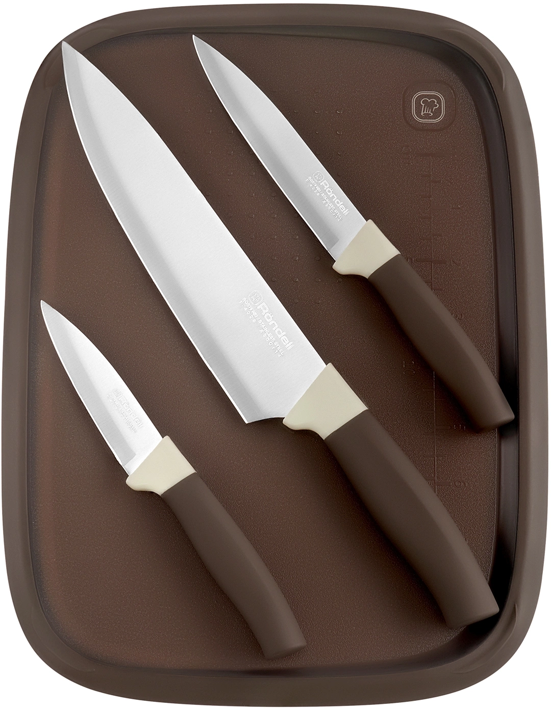 | Состав комплекта | Нож поварской 20 см, универсальный нож 12,7 см и нож для чистки овощей 9 см, разделочная доска |