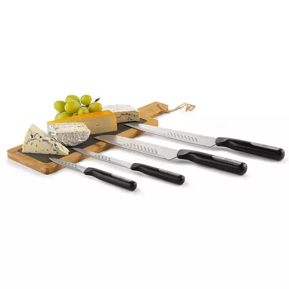 | Особенности | Материал клинка: высококачественная нержавеющая сталь X30Cr14. Материал рукоятки: комбинированная: ударопрочный пластик и нержавеющая сталь. Преимущества: лезвия ножей с эффектом anti-stick - продукты не прилипают к лезвию в процессе их нарезки. Использование: не подходит для посудомоечной машины. |