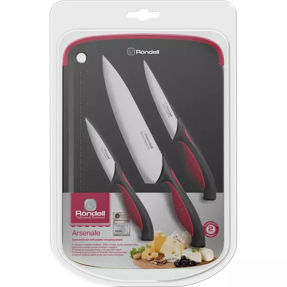 Набор ножей кухон. Rondell RD-1891 Arsenale компл.: 4 предм. разд.дос. черный/бордовый блистер