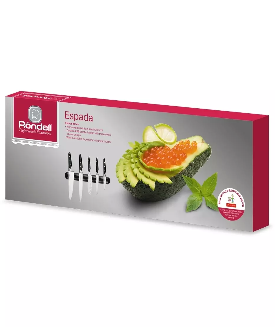 Набор ножей кухон. Rondell RD-324 Espada компл.: 5 предм. магн.держ. черный подар.коробка