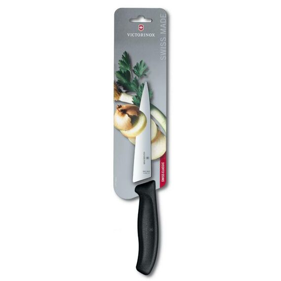 Нож кухонный Victorinox Swiss Classic стальной разделочный лезв.150мм прямая заточка черный блистер [6.8003.15B]