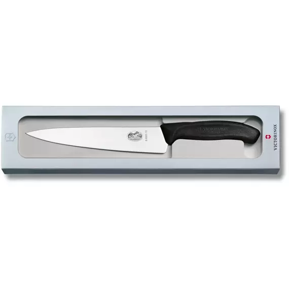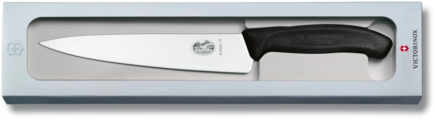 Нож кухонный Victorinox Swiss Classic стальной разделочный лезв.190мм прямая заточка черный подар.коробка [6.8003.19G]