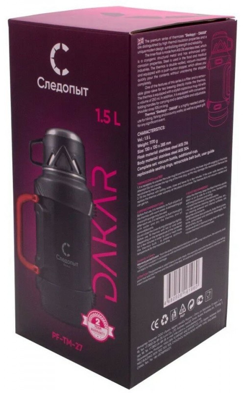 - Термос «Следопыт – DAKAR» – необходимый атрибут в походе, на рыбалке и загородной прогулке, а также отличный подарок
