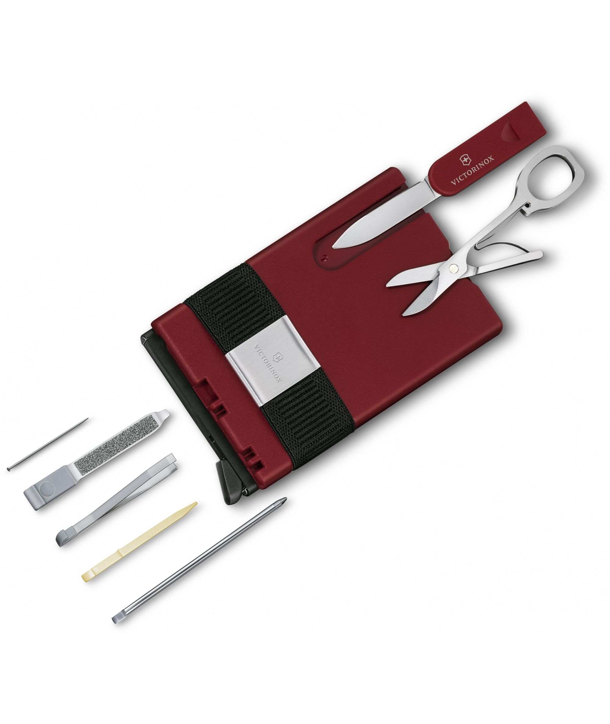 | Список функций | "1. Кардхолдер2. Резинка для наличных денег3.Маленькое лезвие ножницы5. Пилочка для ногтей6. Отвертка 2.5 мм7. Пинцет8. Зубочистка9.Булавка10. Шариковая ручка |