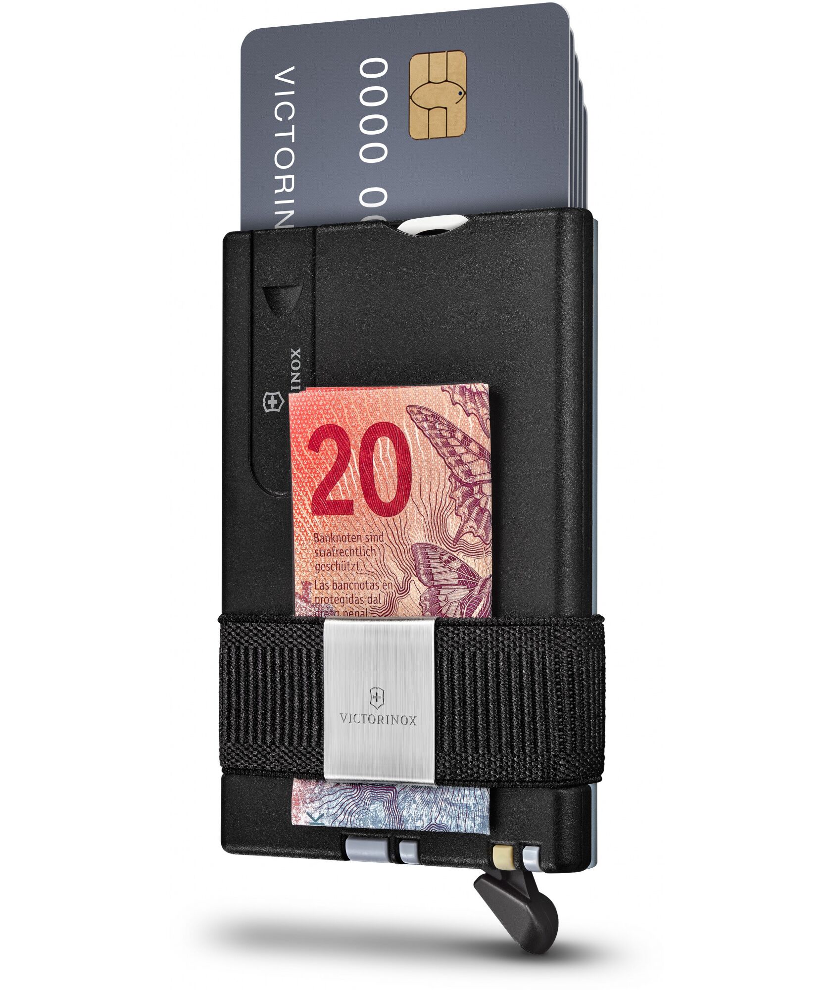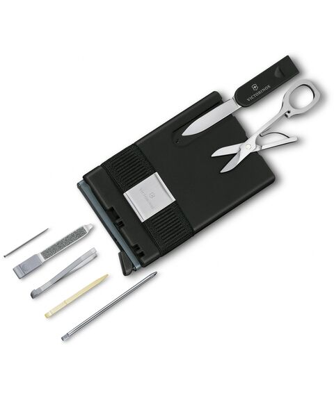 | Список функций | 1. Кардхолдер2. Резинка для наличных денег3. Маленькое лезвие4. Ножницы5. Пилочка для ногтей6. Отвертка 2.5 мм7. Пинцет8. Зубочистка9. Булавка10. Шариковая ручка |