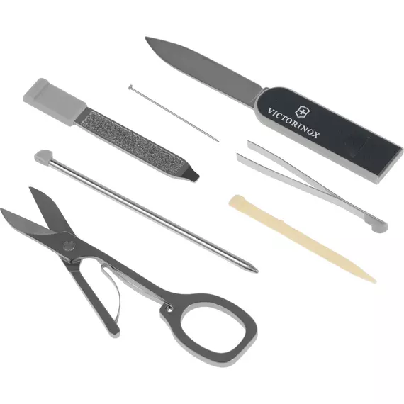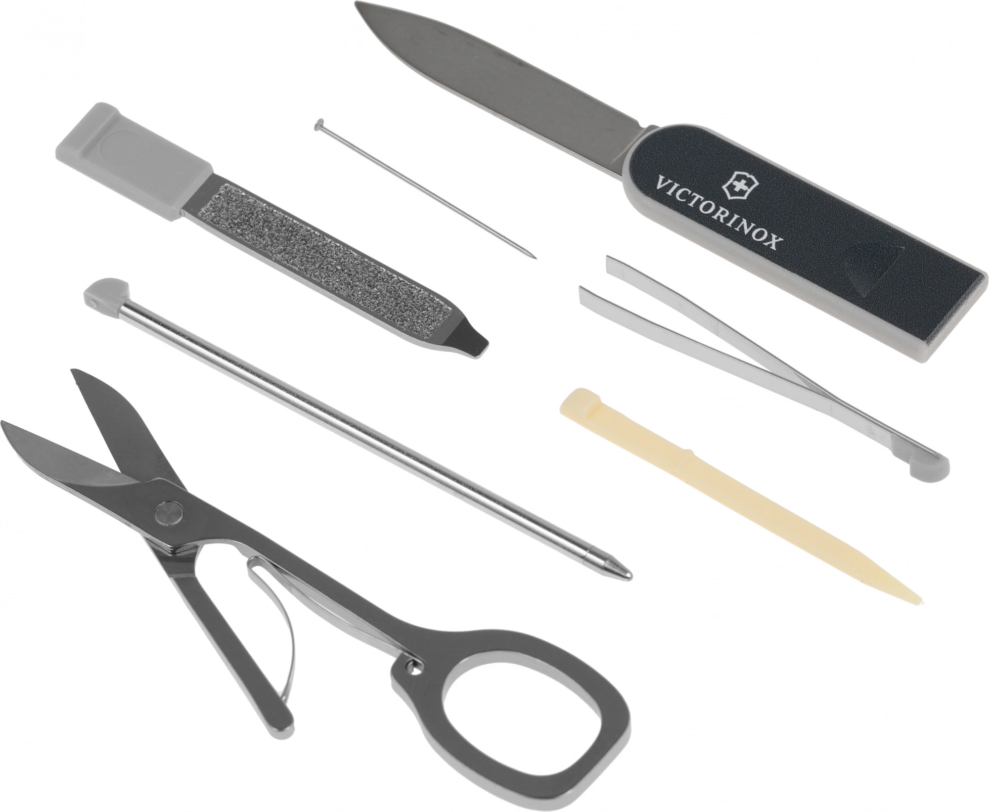 | Список функций | 1. Нож2. Ножницы3. Пилочка для ногтей с 4. - отвёртка 2,5 мм5. линейка (см)6. линейка (дюйм)7. Булавка8. Пинцет9. Зубочистка10. Шариковая ручка |