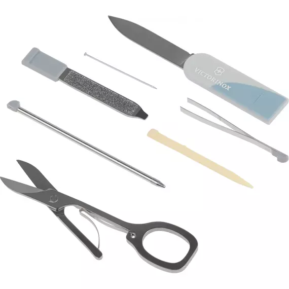 | Список функций | 1. Нож2. Ножницы3. Пилочка для ногтей с 4. - отвёртка 2,5 мм5. линейка (см)6. линейка (дюйм)7. Булавка8. Пинцет9. Зубочистка10. Шариковая ручка |