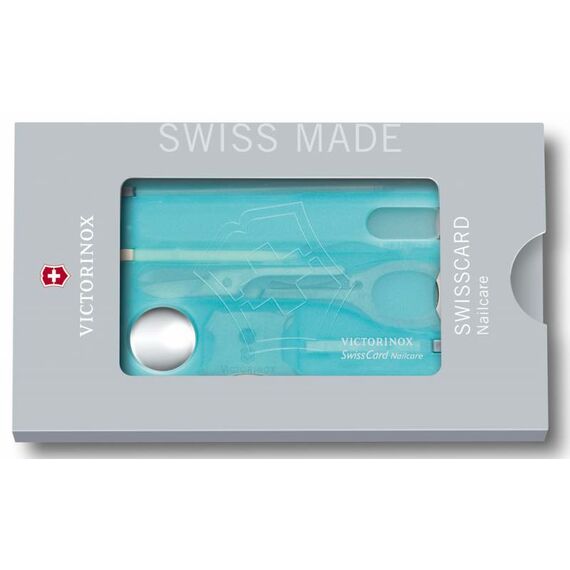 Швейцарская карта Victorinox SwissCard Nailcare бирюзовый полупрозрачный коробка подарочная [0.7240.T21]