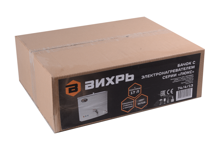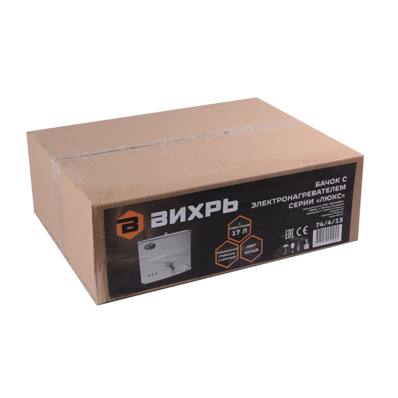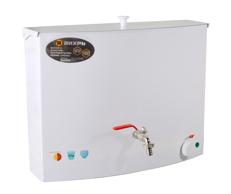 Бачок с электронагревателем Вихрь 74/4/13 с подогревом, 1300 Вт, белый, кран: металл, 17 л, 4.5 кг, цвет белый