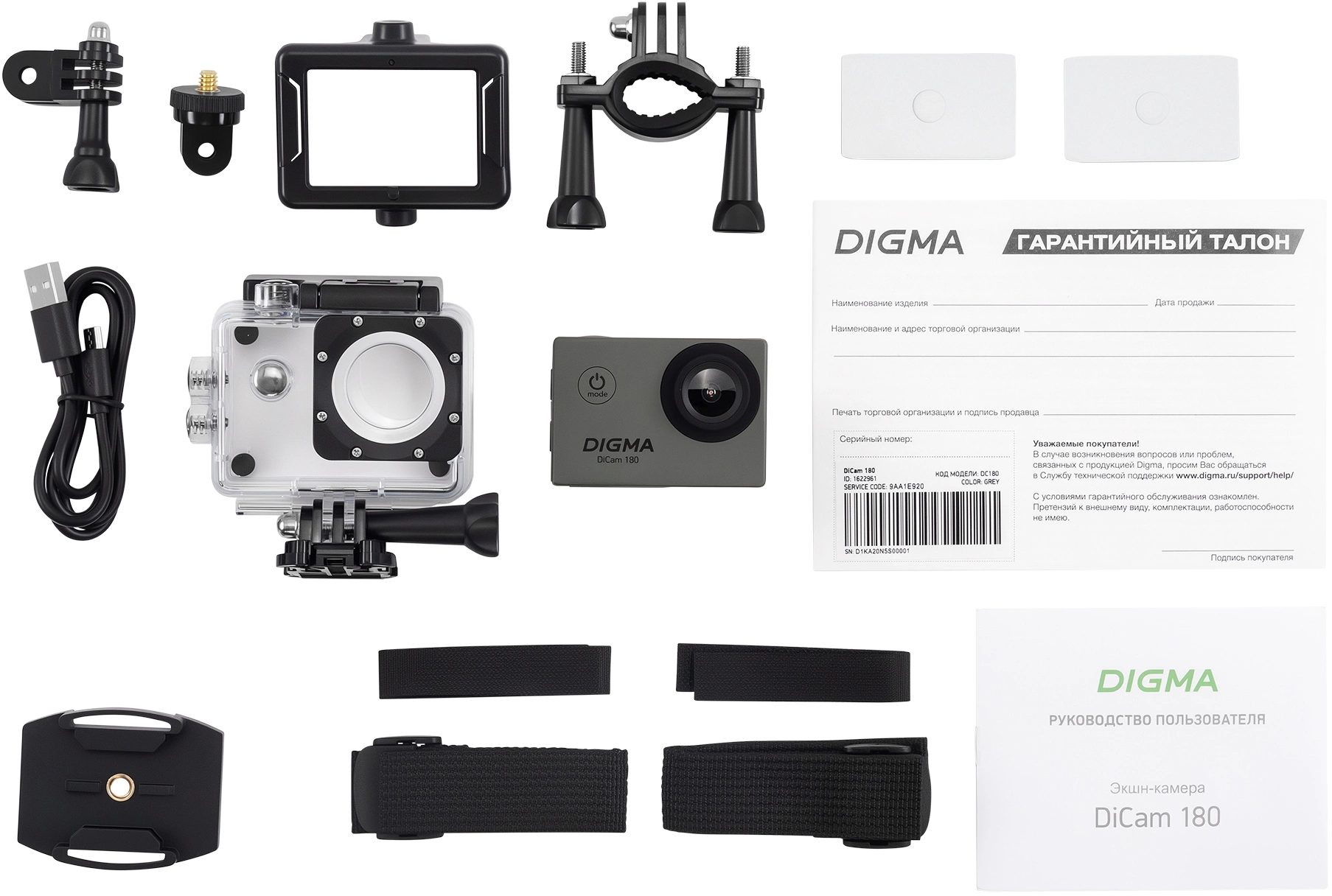 Экшн-камера Digma DiCam 180 серый [DC180]