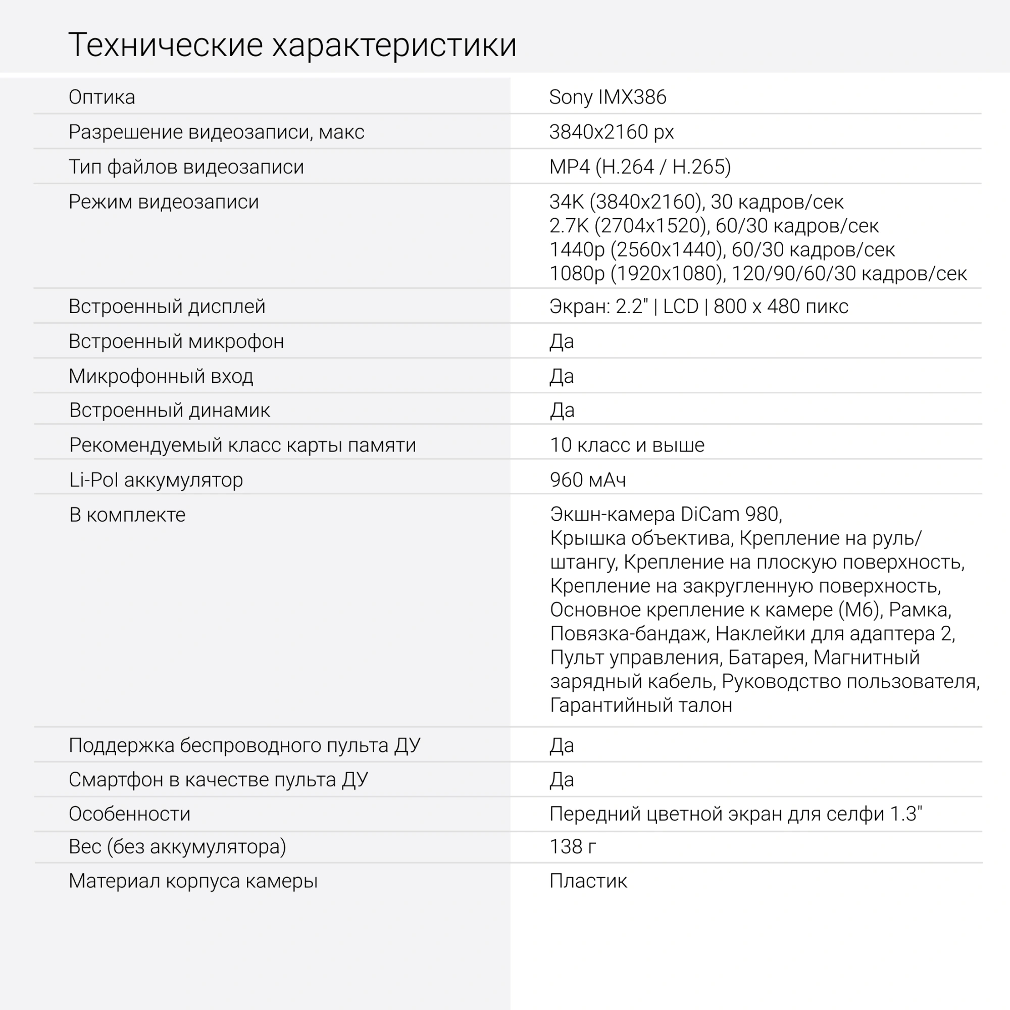 | Разрешение видеозаписи, макс (гориз / верт) | 3840x2160pix |