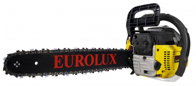 - Бензопила Eurolux GS-4518 функциональна и практична. Агрегат отлично подходит для обрезки сучьев, валки деревьев небольшого диаметра, распиловки досок, заготовки дров.