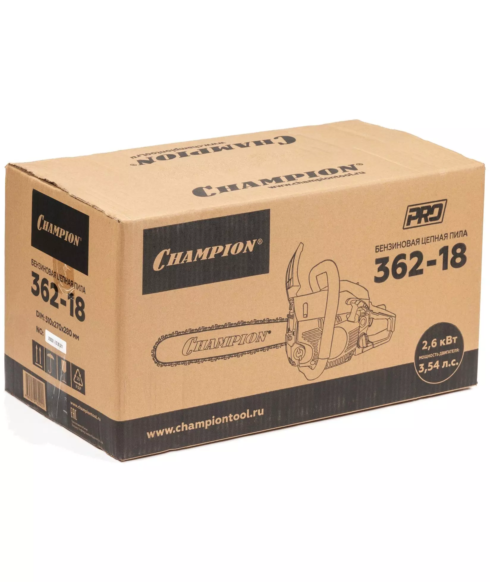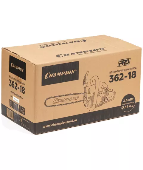 Бензопила Champion 362 18", 2.6кВт/3.54л.с., шина 45см-К095, цепь .325х1.5х72зв., 5.2кг