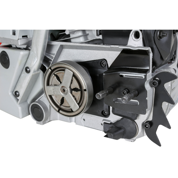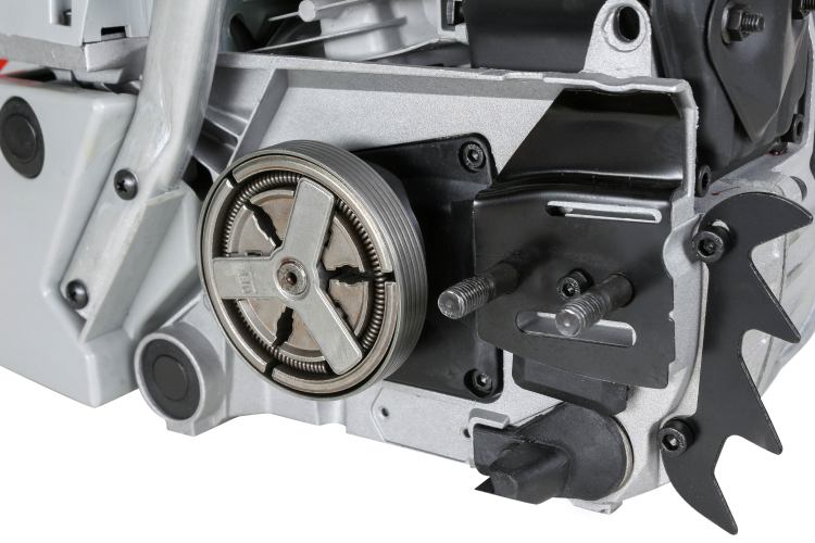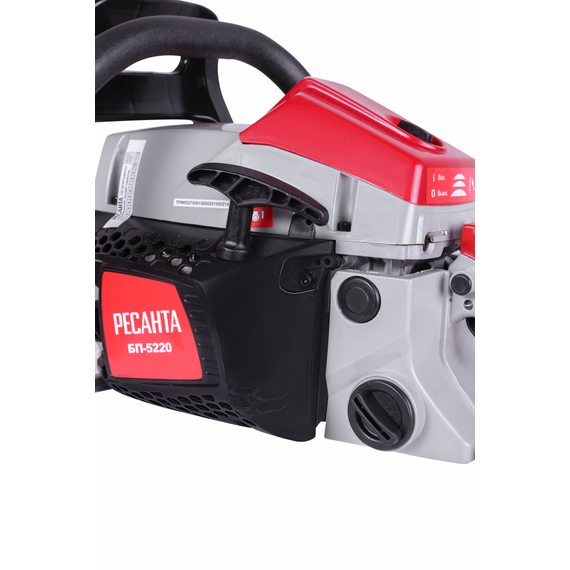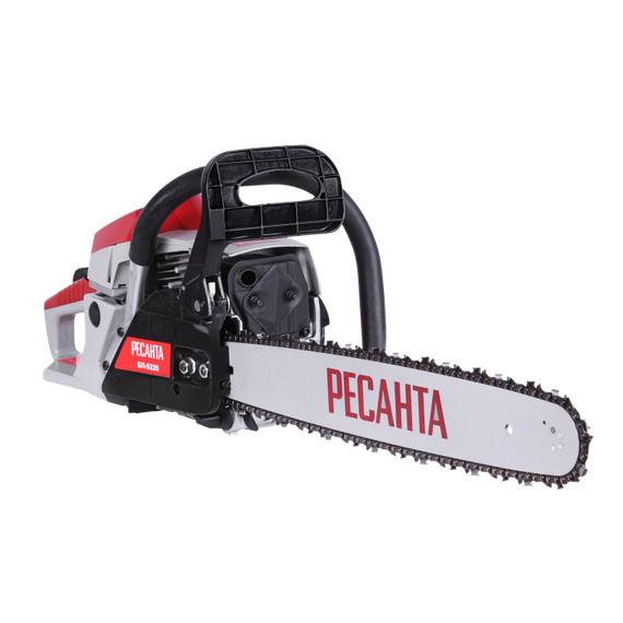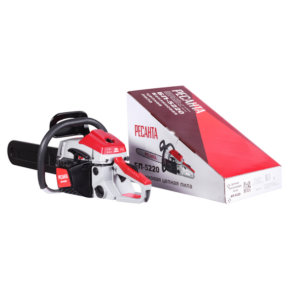 - Бензопила БП-5220 Ресанта - прочный и мощный агрегат позволит справиться с задачами любого уровня сложности. Обладает долговечной конструкцией, отличной маневренностью. Резиновые амортизаторы, расположенные между рукоятками и картером пилы, снижают вредную вибрационную нагрузку при работе с бензопилой, делают работу комфортнее. Масляный бак размещается в передней части картера. Принудительная смазка цепи и шины применяется для снижения трения между ними, что увеличивает срок службы пильной гарнитуры. Легкий старт влияет на скорость запуска, особенно в зимний период. Он добавляет дополнительный крутящий момент при рывке. Безопасности в этой модели уделено много внимания. Блокировки курка газа предотвращает случайное нажатие. Функция механического инерционного тормоза цепи также важна: при резком отскоке пилы во время пиления (вверх и назад) рука упирается в ручку тормоза и отщелкивает ее, а тормозная лента затягивается и тормозит барабан сцепления, цепь при этом останавливается практически мгновенно. Защитный щиток в случае разрыва цепи или ее соскока с шины предотвращает травмирование.