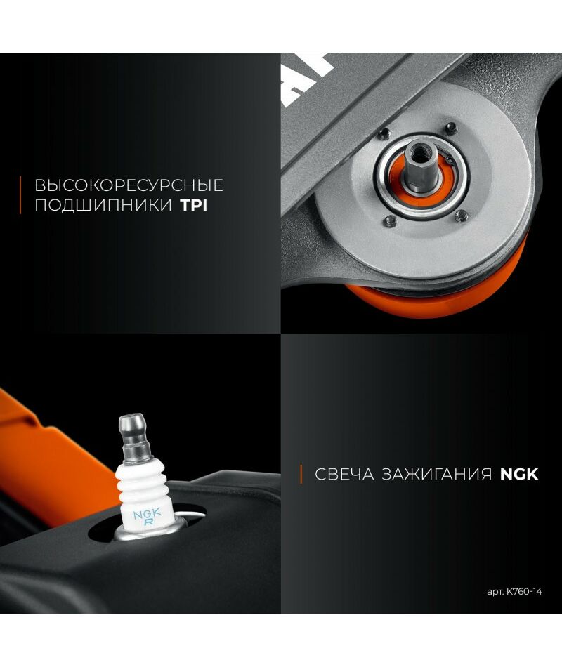 - Усиленный шнур стартера со значительно повышенной износостойкостью повышает надежность эксплуатации