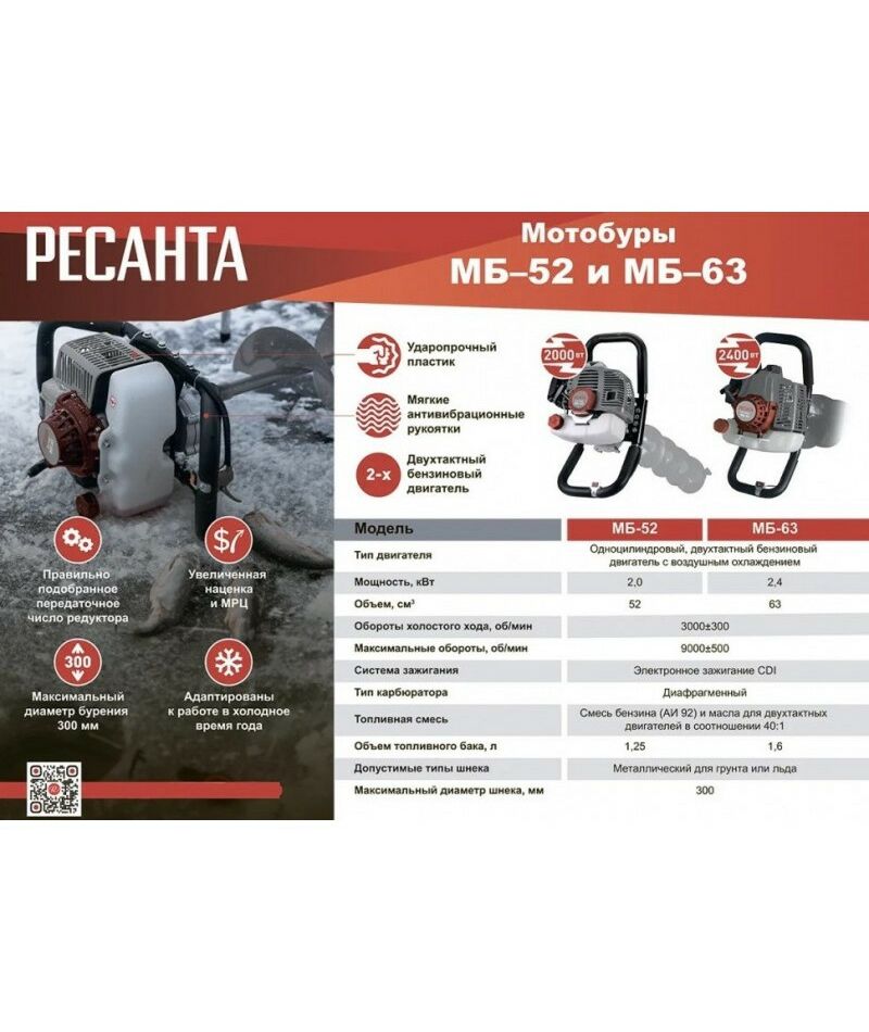 - Мотобур бензиновый Ресанта мб-63 предназначен для сверления отверстий в твердом грунте или льду. Устойчив к низким температурам воздуха, поэтому его можно использовать зимой