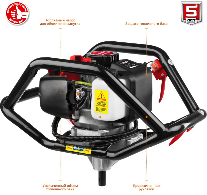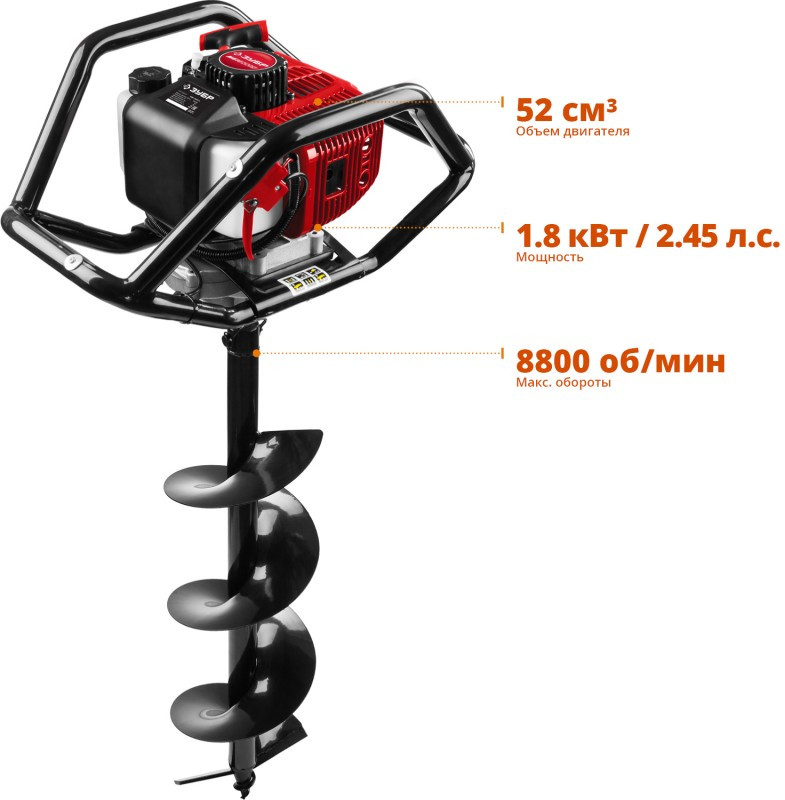 Мотобур (бензобур) со шнеком Зубр МБ2-250 Н d=60-250 мм, 52 см3, 2 оператора