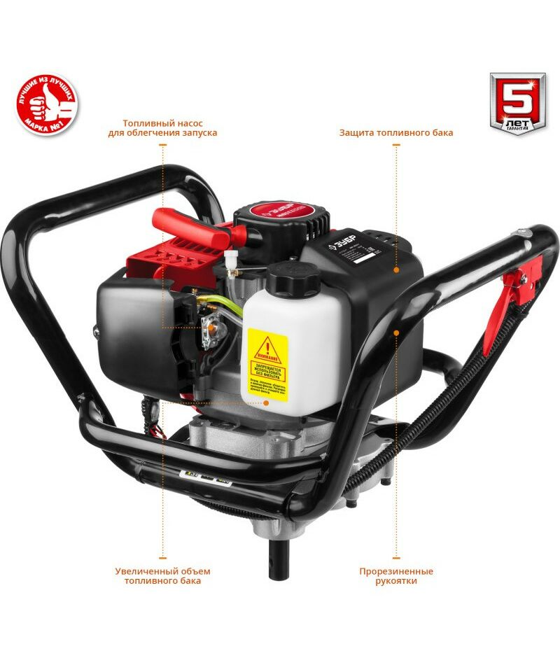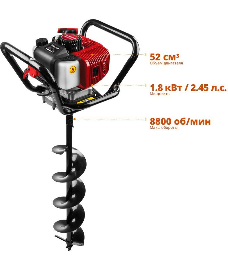 Мотобур (бензобур) Зубр МБ1-200 Н со шнеком, d=60-200 мм, 52 см3, 1 оператор