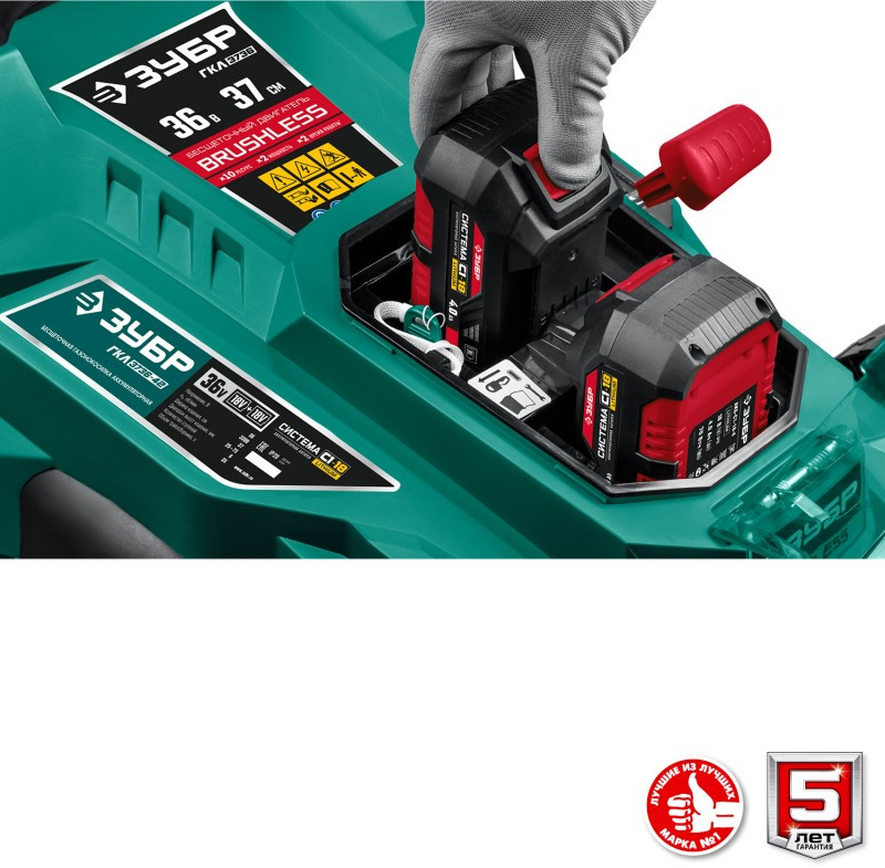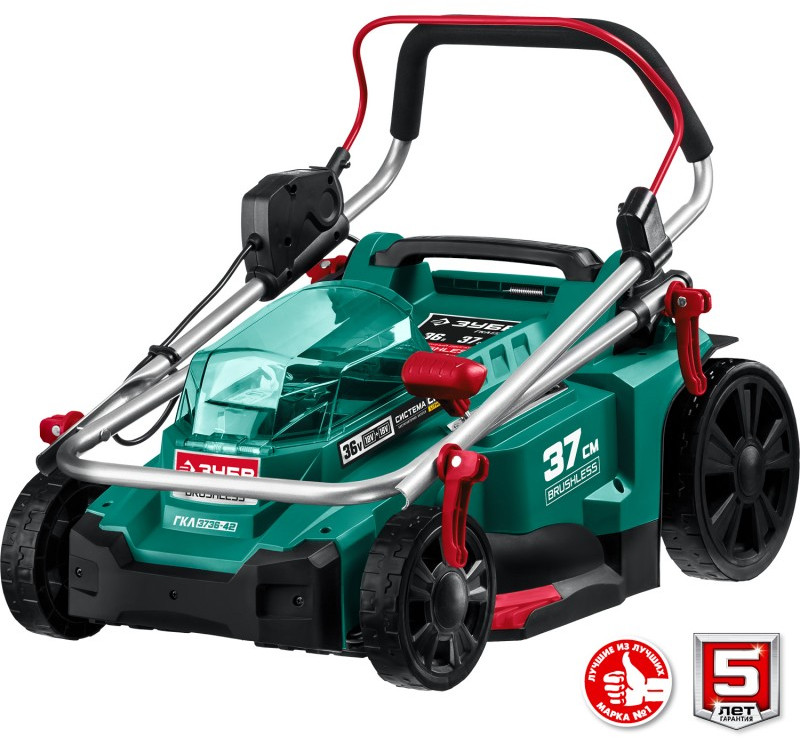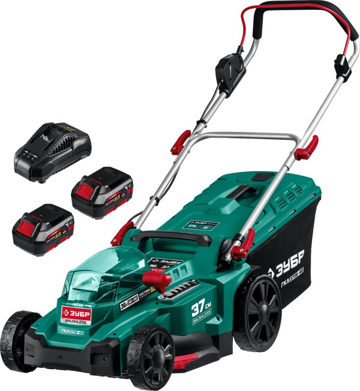 Бесщеточная газонокосилка Зубр ГКЛ-3736-42 36В, 2х18В АКБ (4Ач)