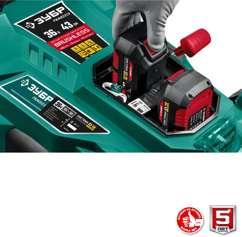 Бесщеточная газонокосилка Зубр ГКЛ-4336 36В, без АКБ