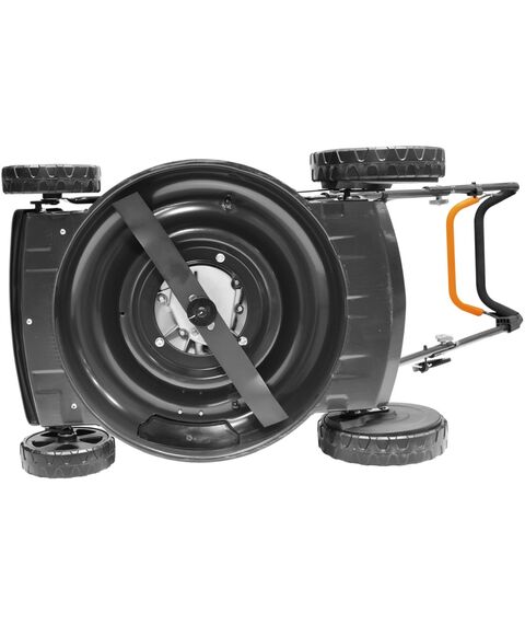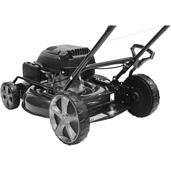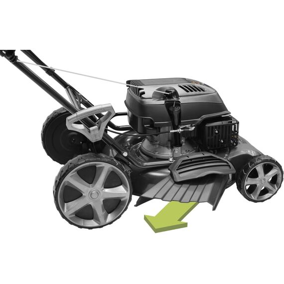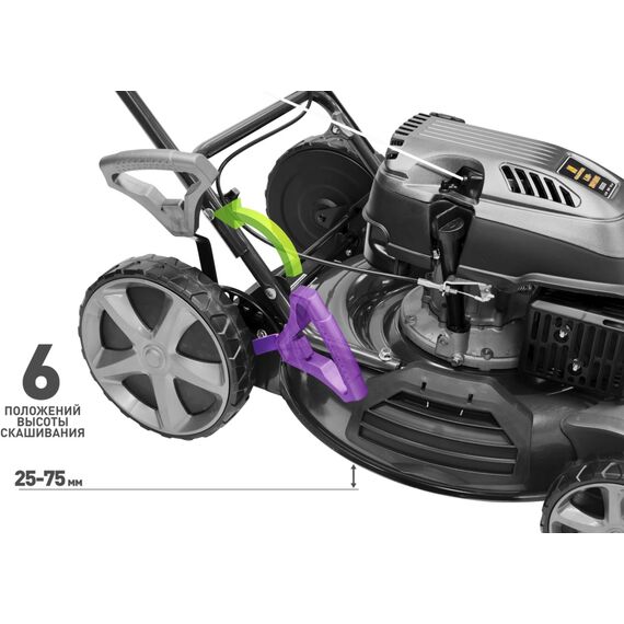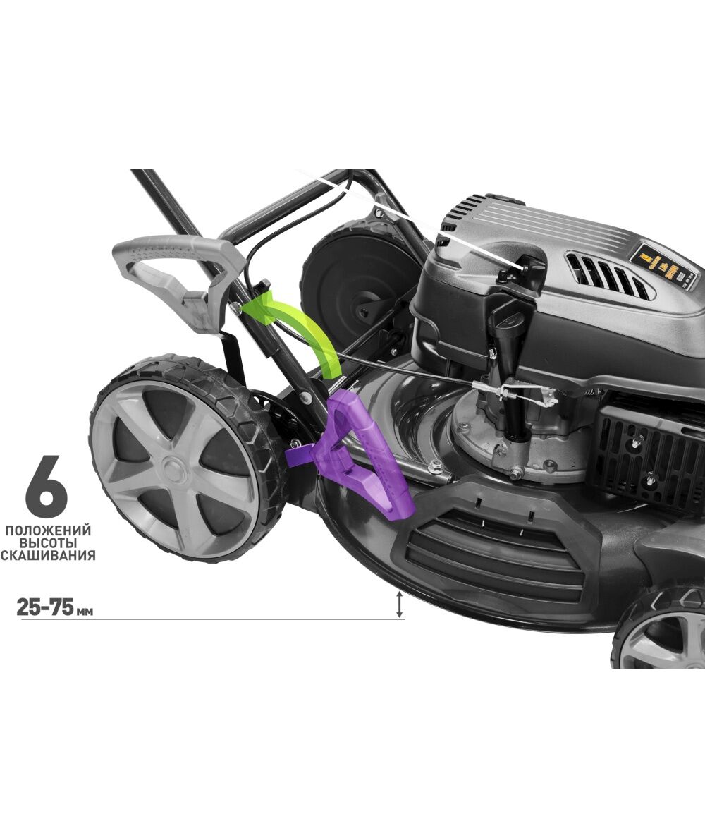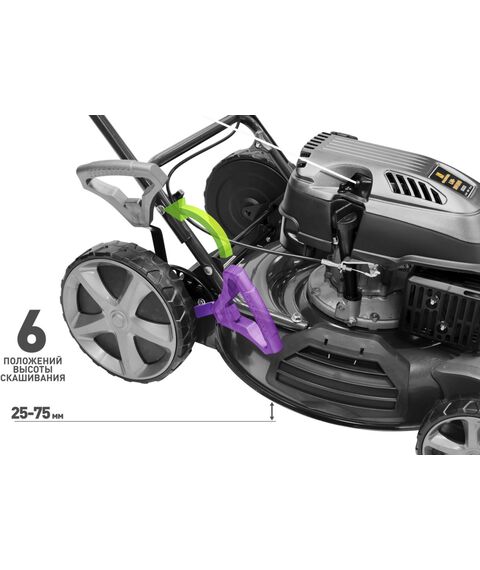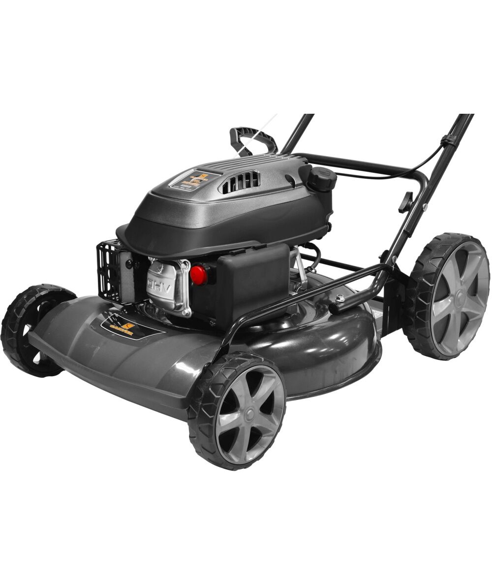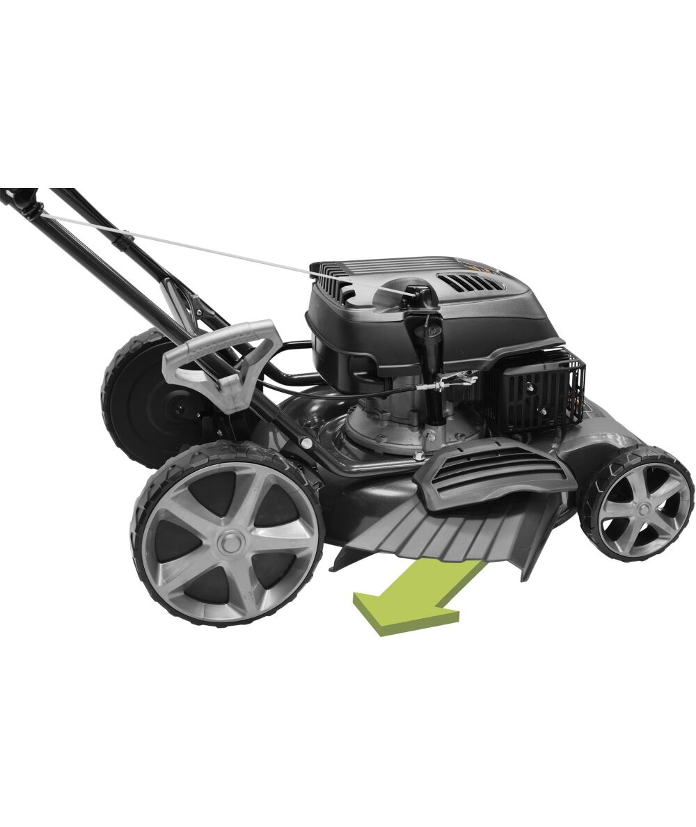 | Особенности | Большие колеса для лучшей проходимости; Система измельчения травы (мульчирования) для удобрения почвы Eco Clip; Экономичный двигатель с высокой производительностью; Центральный рычаг регулировки высоты скашивания; Регулируемая складная рукоятка; Прочная стальная дека |
