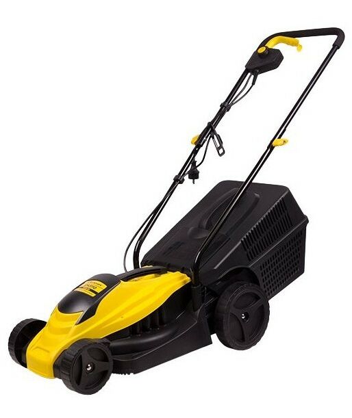 Газонокосилка Champion EM3110 мощностью 1000 Вт. Ширина кошения составляет 320 мм.