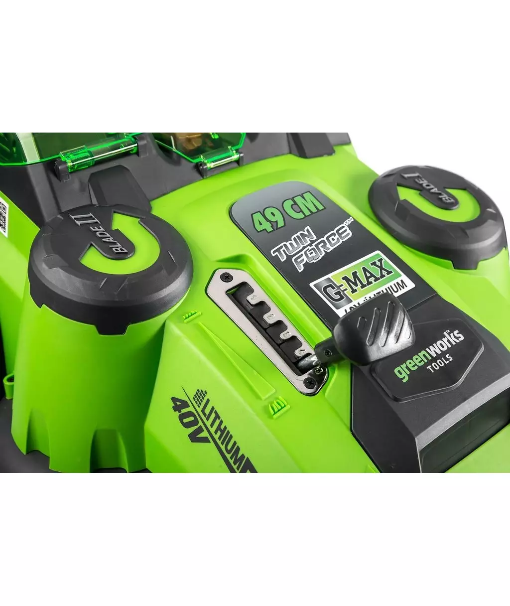 Газонокосилка Greenworks G40LM49DB роторная, 40V, Мощность 1.5кВт, 49см, 2 в 1, 60л, 18кг [2500207]