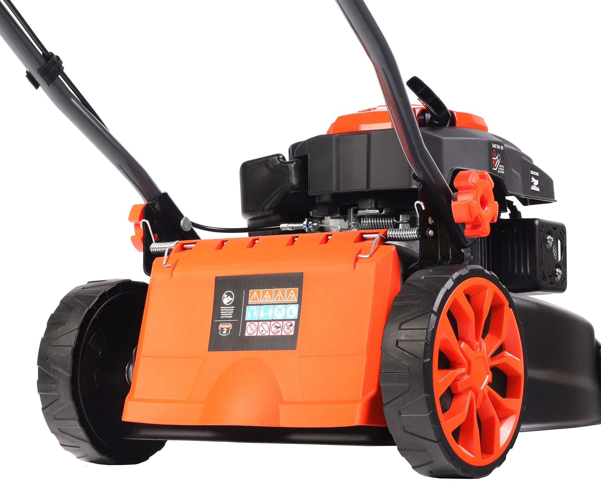 | Комплект поставки | газонокосилка; травосборник; колеса; клипса для закрепления провода на ручке; набор крепежа для крепления верхней и нижней части ручек; набор крепежа для закрепления нижней части ручек на корпусе; ключ свечной; ключ для затягивания крепежа; расшифровка серийного номера |