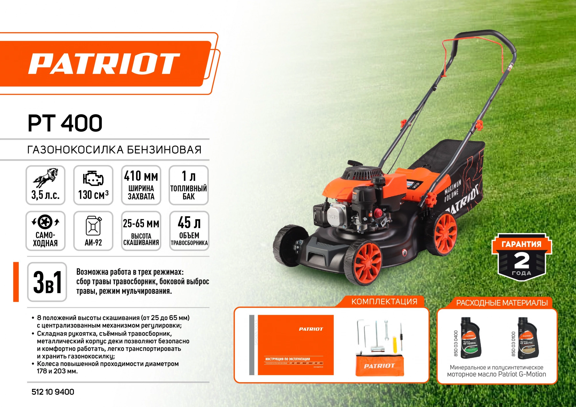 Газонокосилка роторная Patriot PT 400 [512109400]