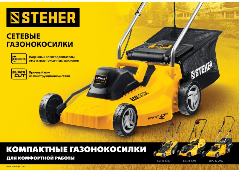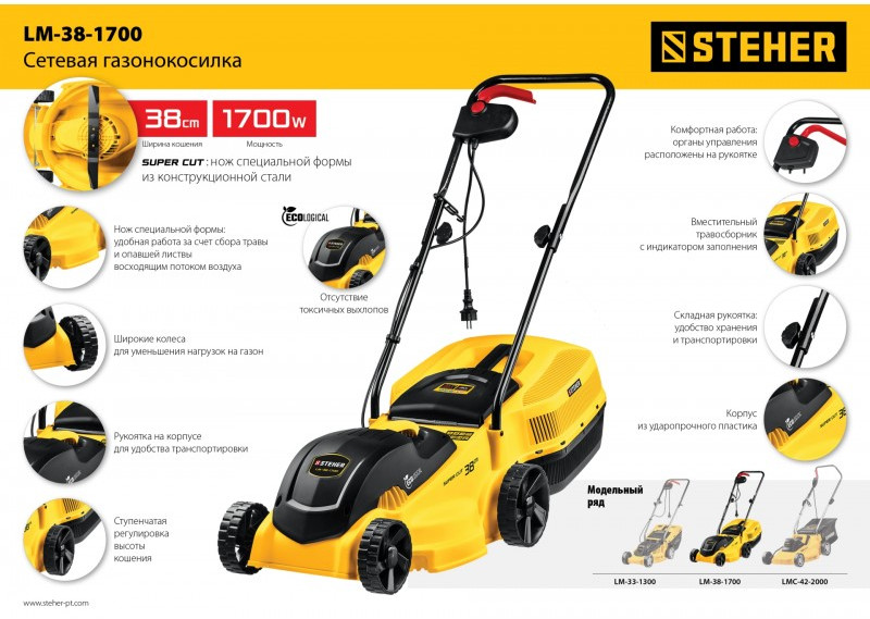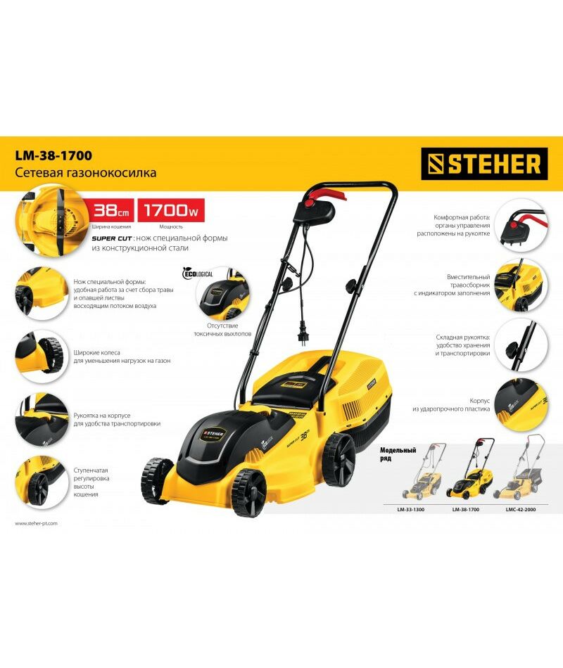 Газонокосилка сетевая STEHER LM-38-1700 1700 Вт, ш/с 38 см