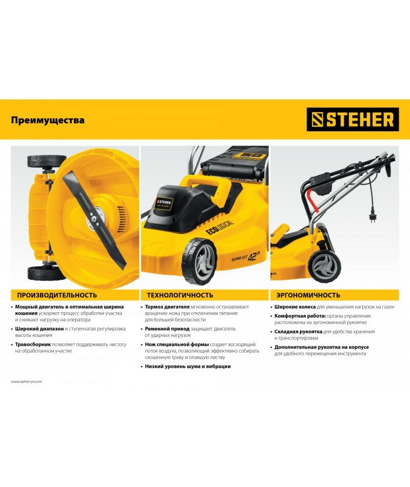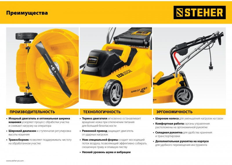 - Мощный двигатель ускоряет процесс обработки, а оптимальная ширина кошения снижает нагрузку, что увеличивает ресурс изделия