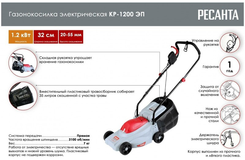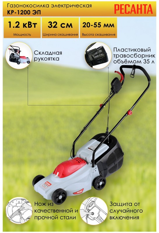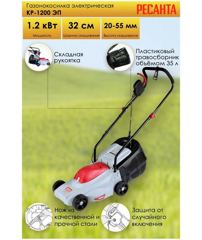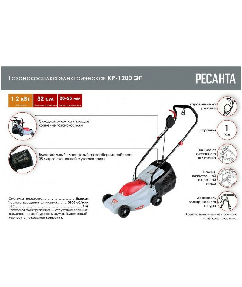 Электрическая газонокосилка РЕСАНТА КР-1200 ЭП