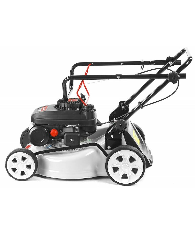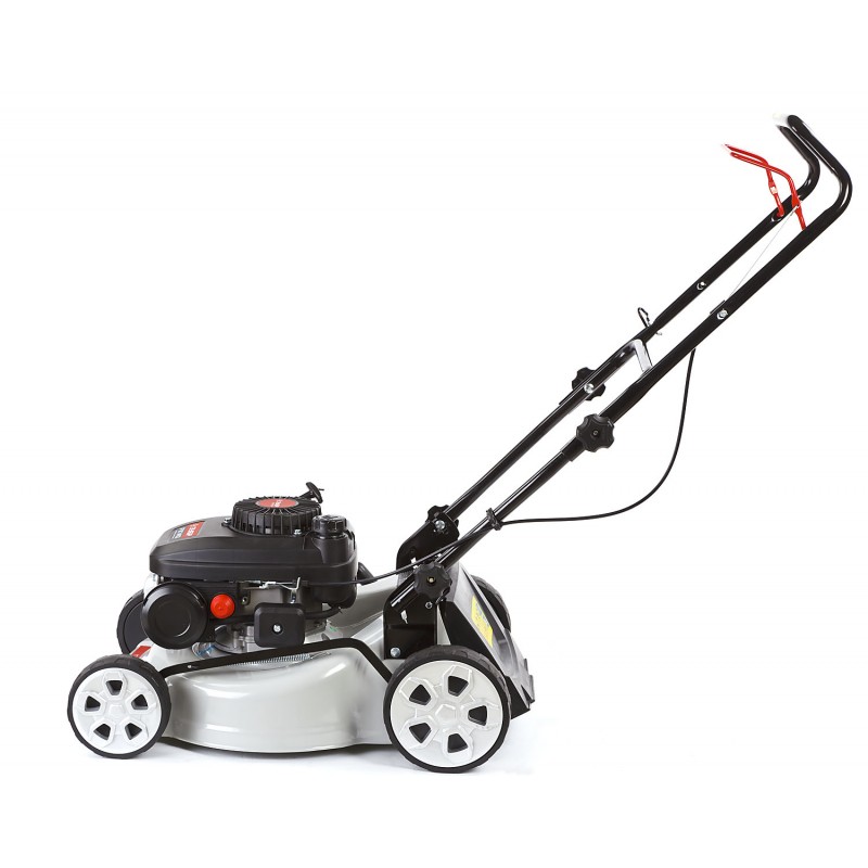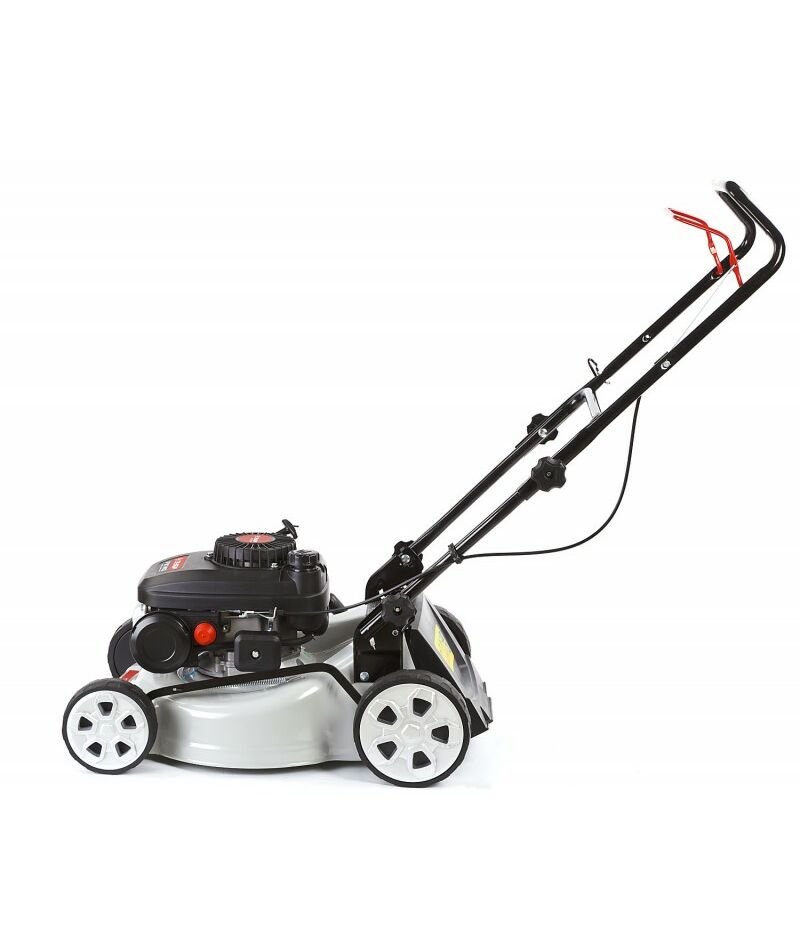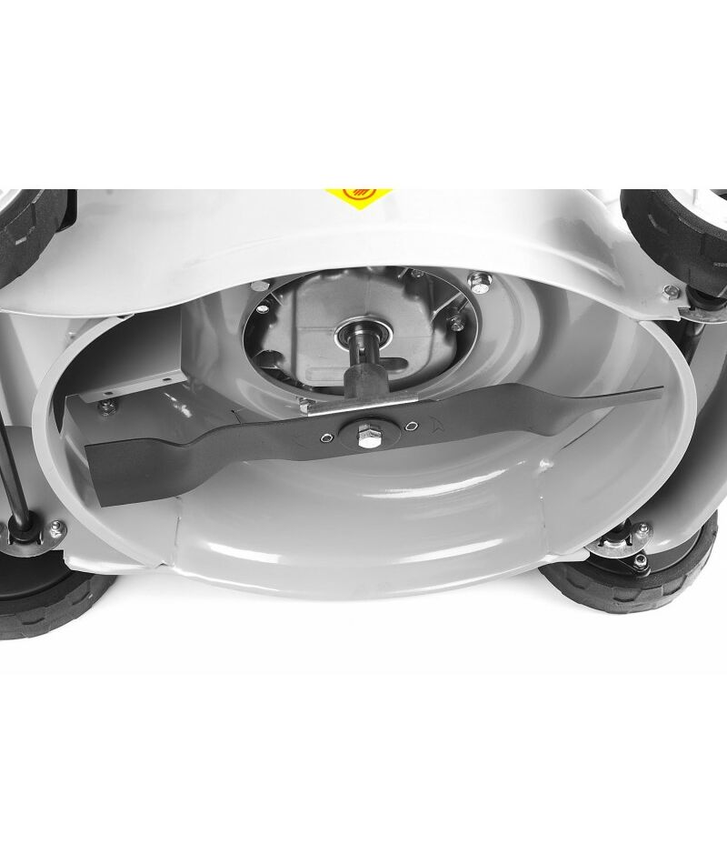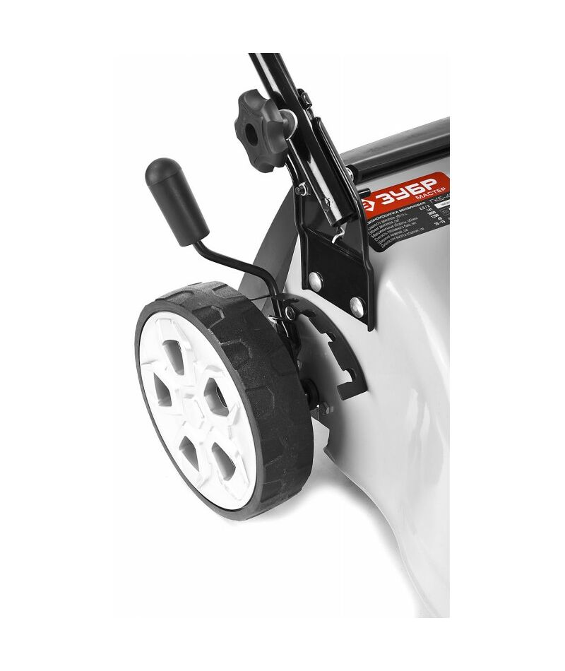 - Колеса увеличенного диаметра на подшипниках и эргономичная рукоятка облегчают перемещение косилки по газону