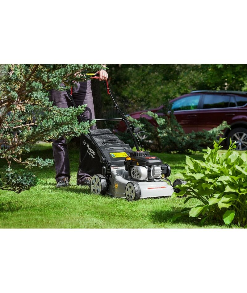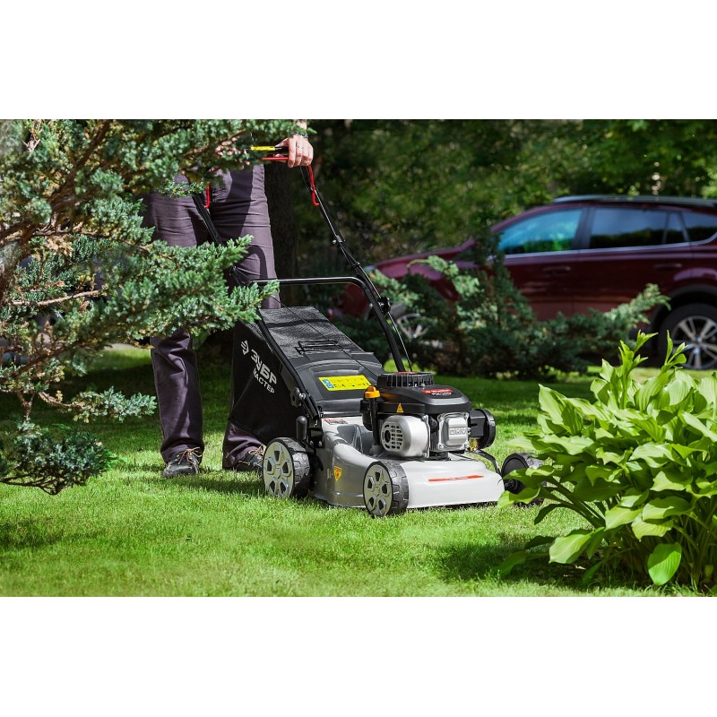 Легко подстрижет густую растительность на вашем газоне, а при систематичном использовании не даст сорнякам распространиться по участку. Она имеет более мощный (по сравнению с электрическими газонокосилками) двигатель, не боится влажной травы и может автономно работать в любой точке участка. С бензиновой газонокосилкой ЗУБР ухаживать за газоном станет просто