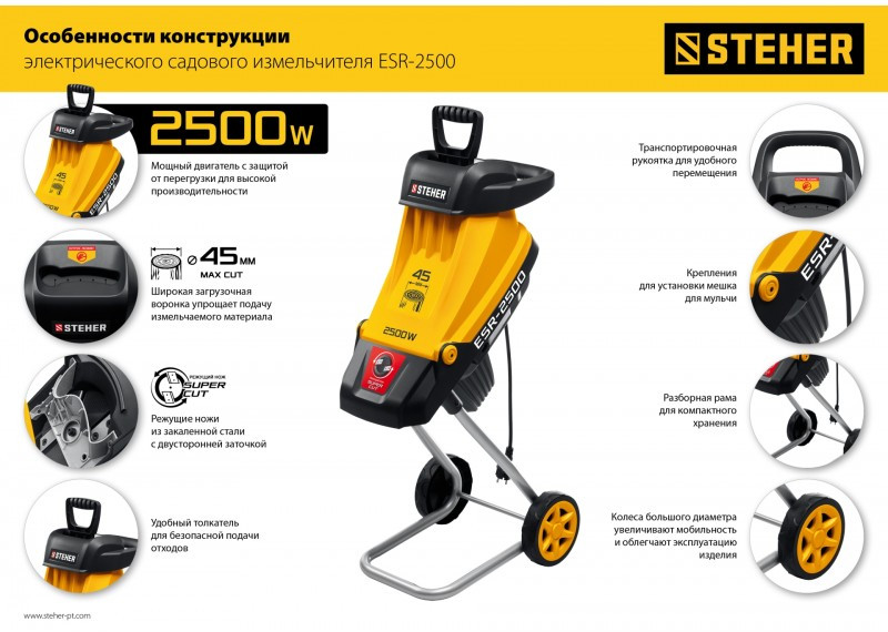 Электрический садовый измельчитель STEHER ESR-2500 2500 Вт