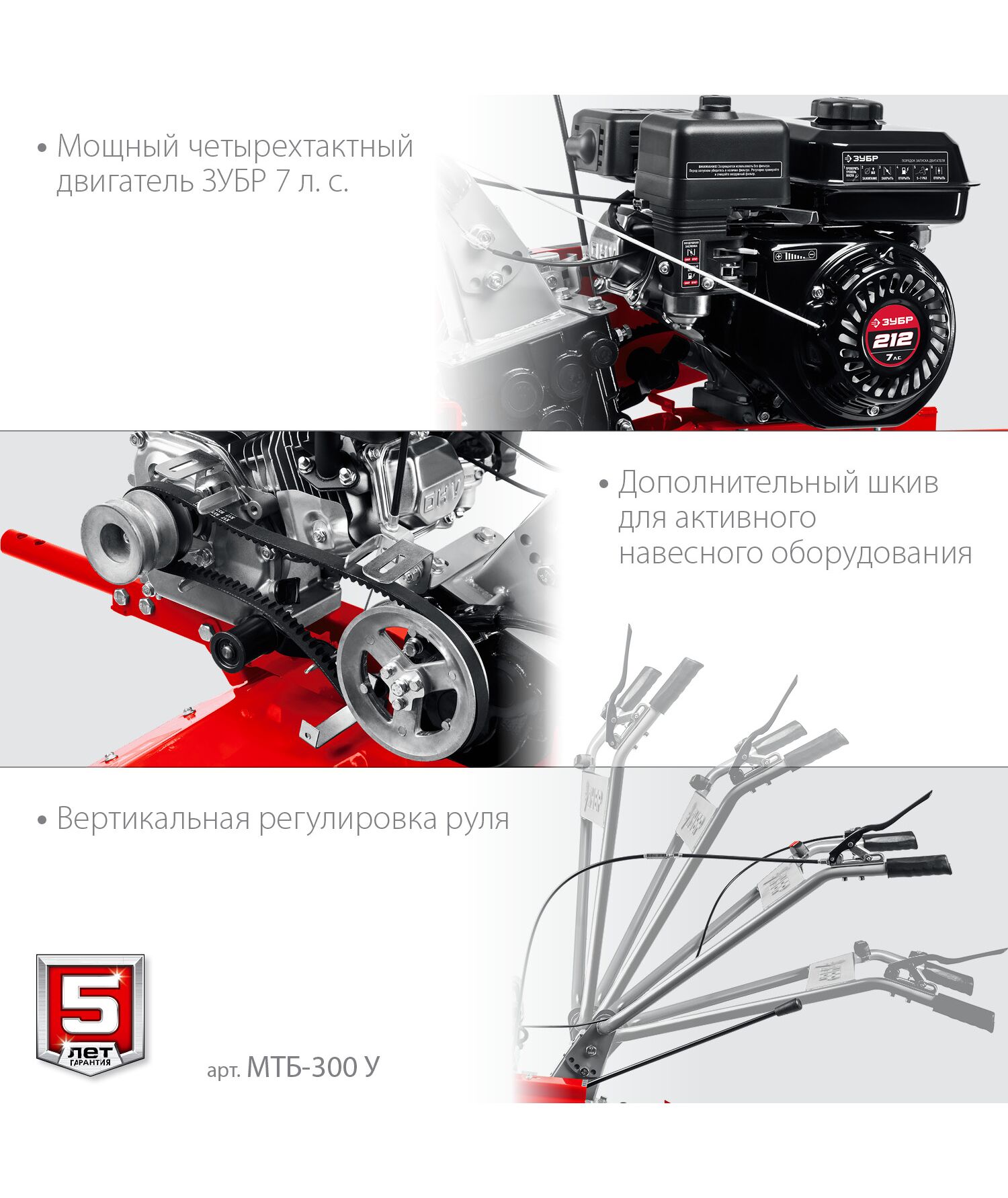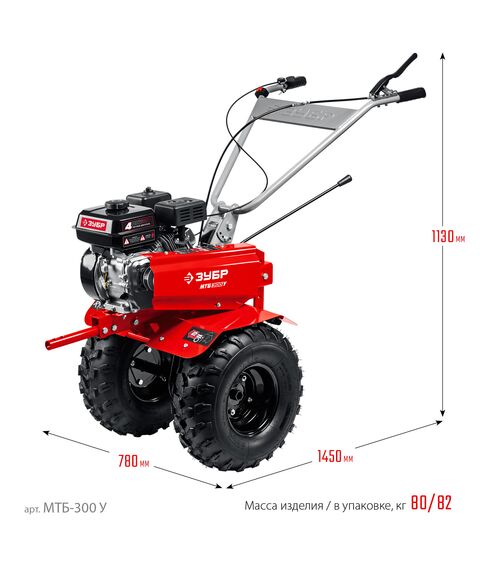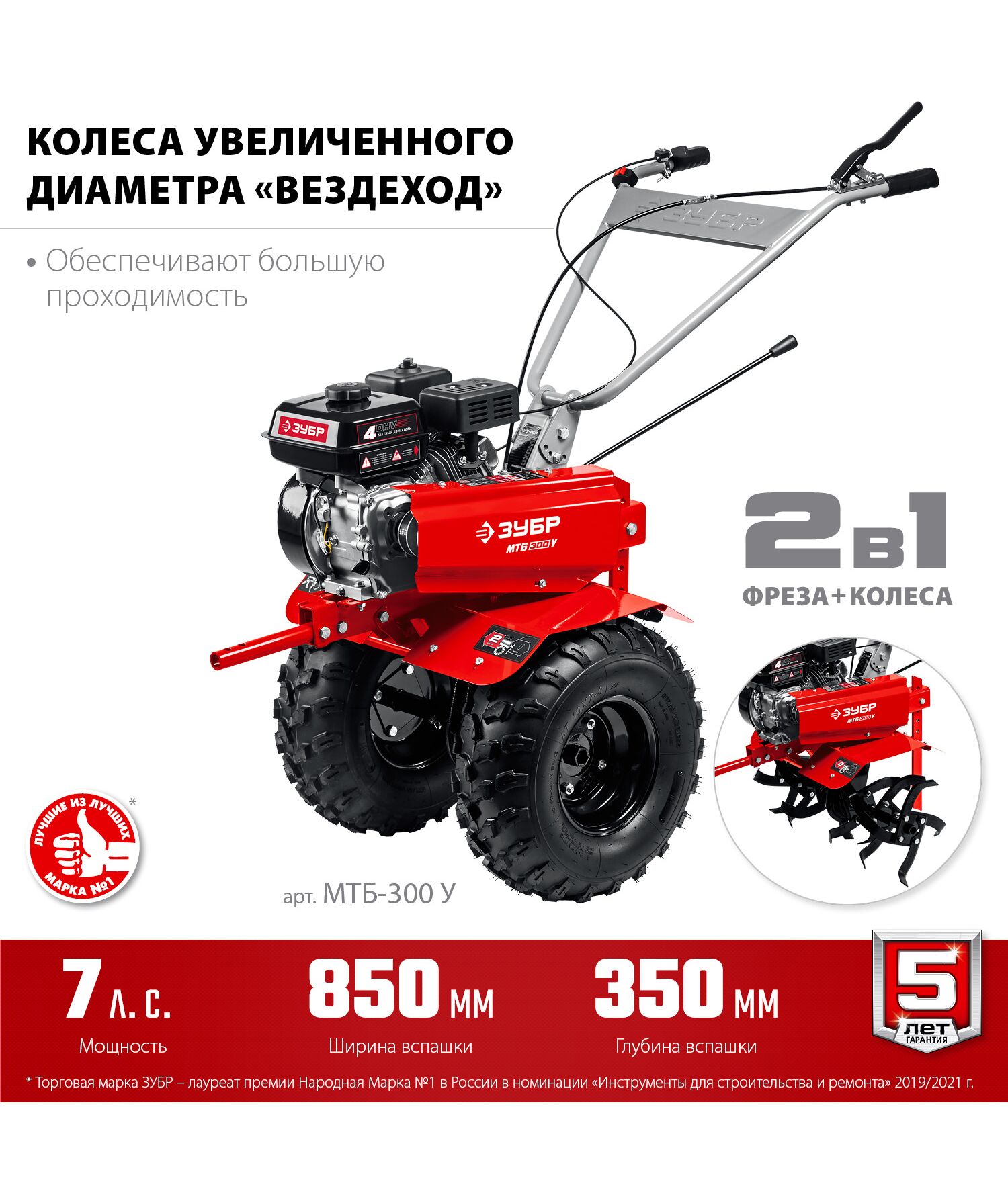 Бензиновый мотоблок Зубр МТБ-300 У увеличенные колеса, 7 л.с.