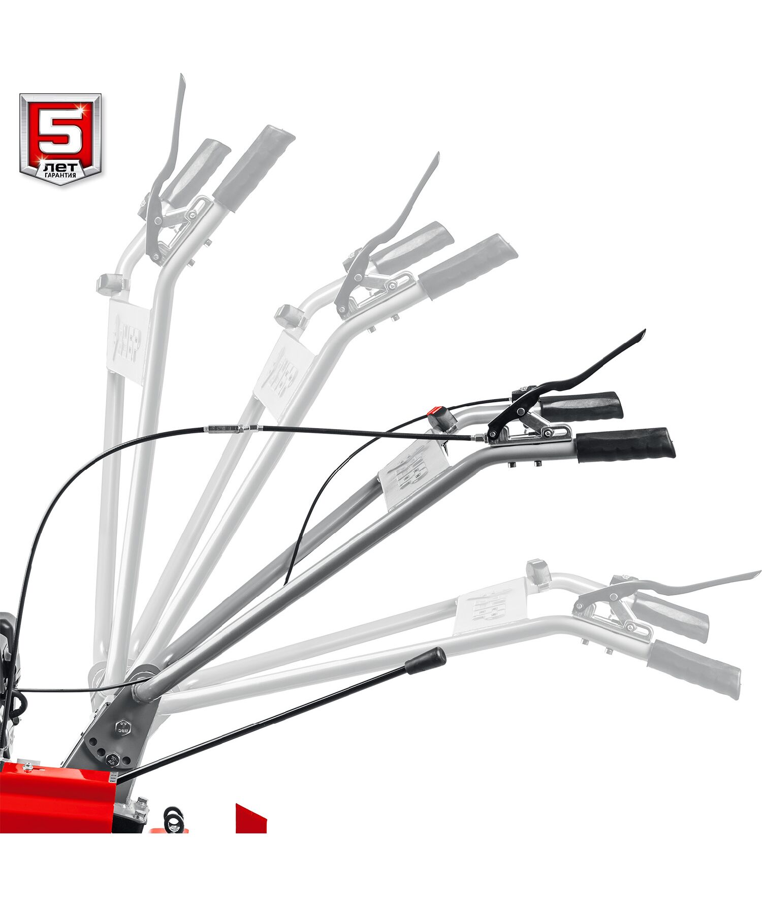 - Рукоять мотоблока с возможностью регулировки по вертикали делает управление более комфортным