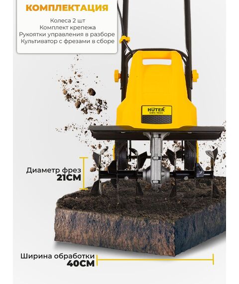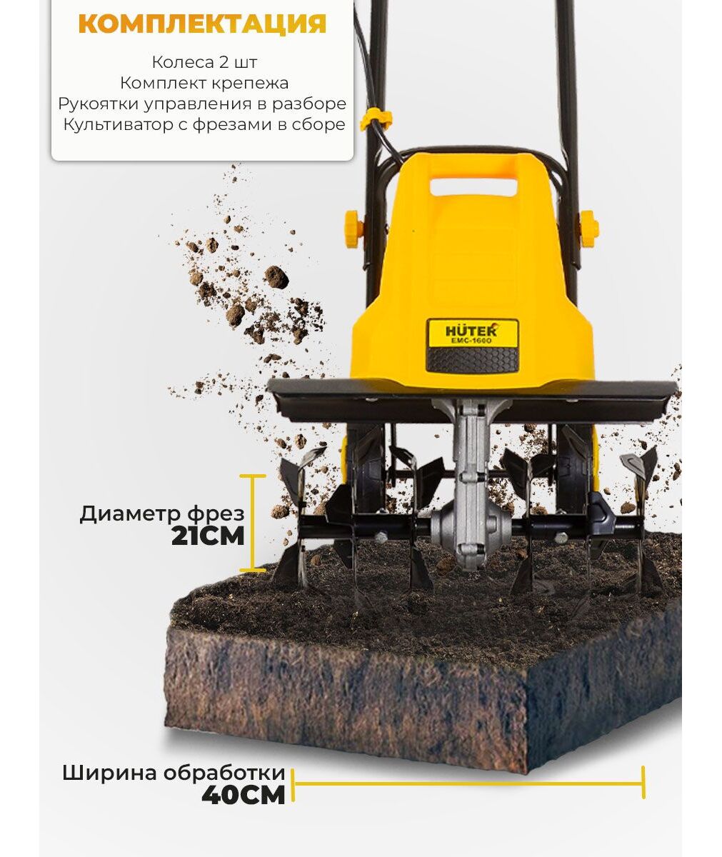 Культиватор электрический HUTER EMC-1600 используется для обработки почвы методом культивации, то есть её рыхления без переворота почвы, выравнивания и т.д. С таким агрегатом можно получить хорошие результаты на дачных участках, ограниченных территориях, междурядьях, на клумбах и возле деревьев. Культиватор укомплектован электрическим синхронным щеточным двигателем и работает от обычной сети 220 В.